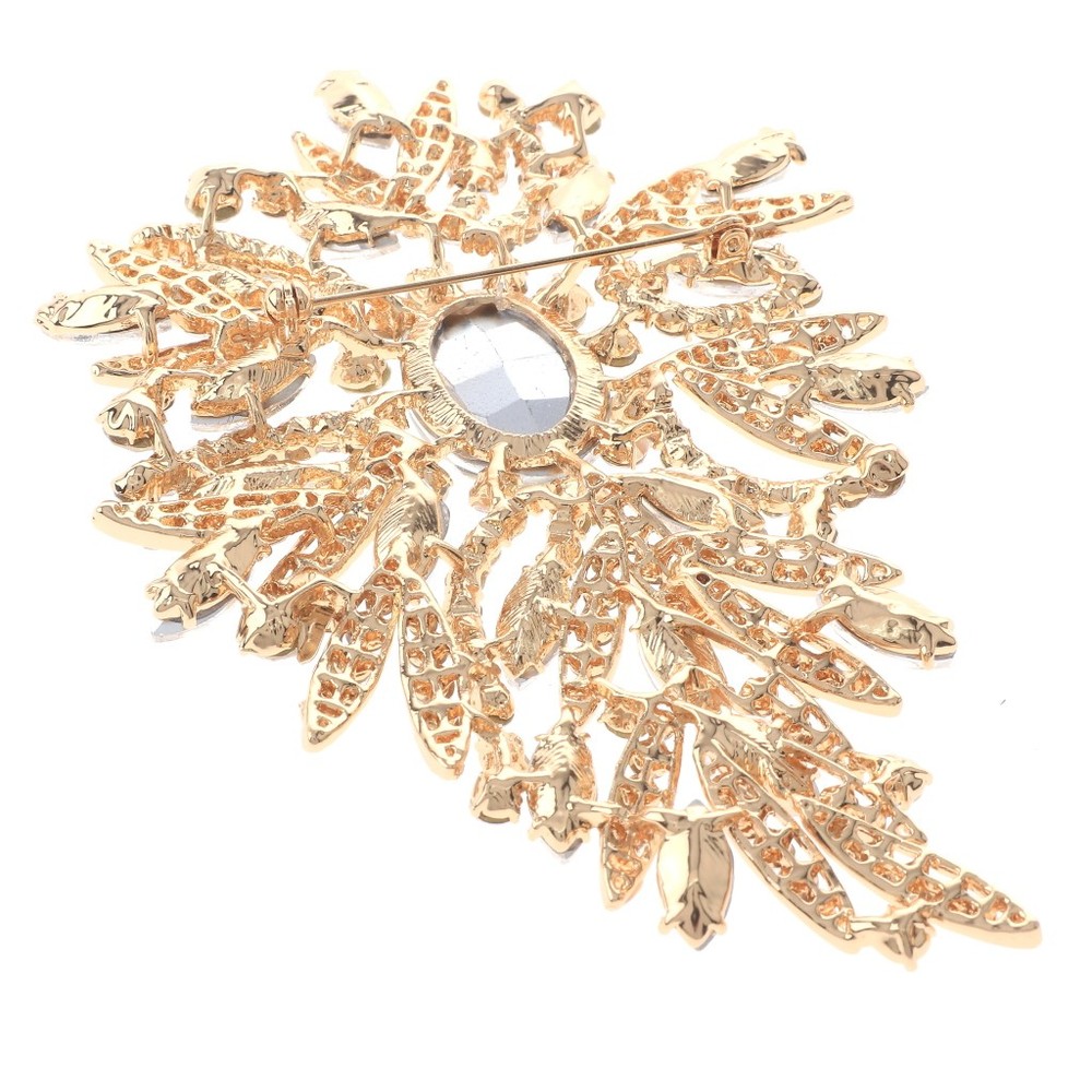 Gold Tone Alloy Metal Extra Large Crystal Flower Brooch P1573-GAB