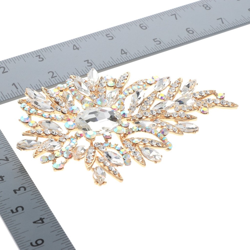Gold Tone Alloy Metal Extra Large Crystal Flower Brooch / Approximate Size: 5.75" L x 3.75" W / Rhinestone / Metal / Lead & Nickel Compliant / Color: Gold & AB Condition: Brand New SKU: P1573-GAB Color: AB Design: Flowers & Plants All orders will ship from USA via UPS or USPS. We expect all local orders will receive the items within 7 business days or less depend the location. Worry free international shipment delay or custom duty fee.