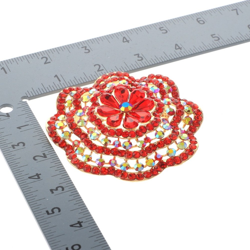 Gold Tone Alloy Metal Large Crystal Rhinestone Flower Brooch / Approximate Size: 3.25" L x 3.25" W / Rhinestone / Metal / Lead & Nickel Compliant / Color: Gold & Red Condition: Brand New SKU: P1575-RED Color: Red Design: Flowers & Plants All orders will ship from USA via UPS or USPS. We expect all local orders will receive the items within 7 business days or less depend the location. Worry free international shipment delay or custom duty fee.