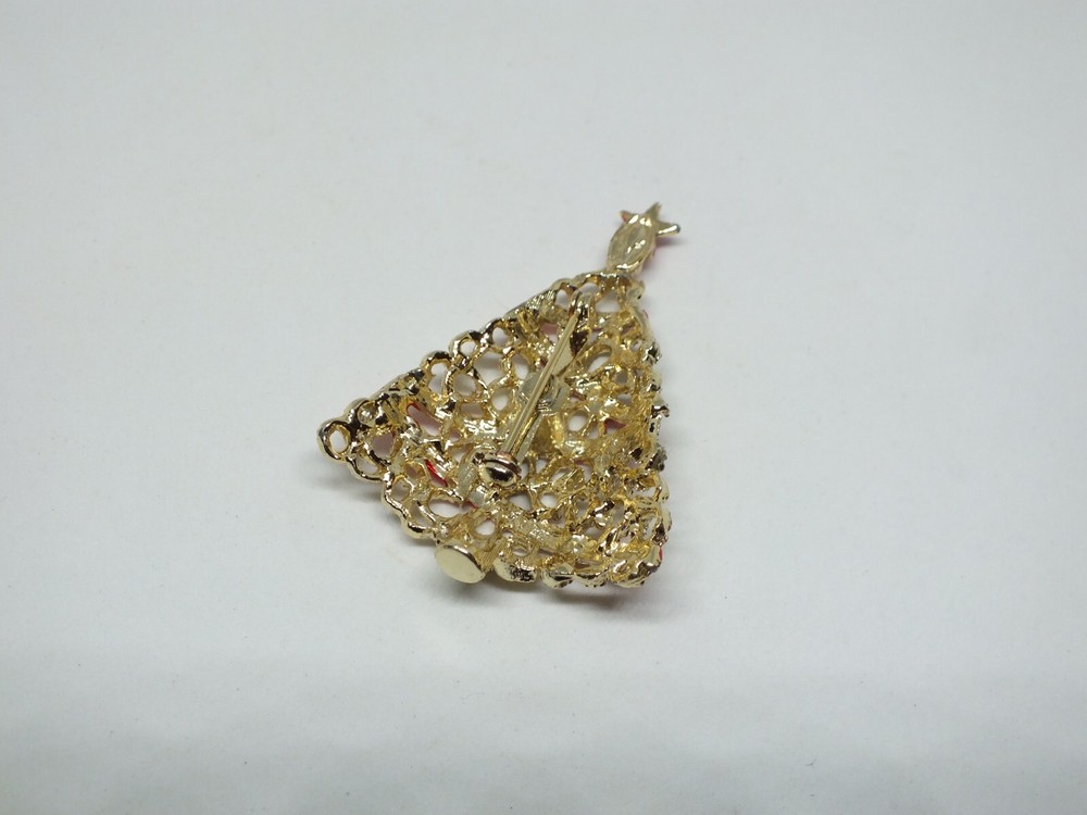 For your consideration is a beautiful brooch or pin done in a gold tone adorned with red enamel in the shape of a Christmas tree measuring 2 x 1 1/2 inches in size. Great addition to your holiday jewelry wardrobe. Very good gently used condition. Comes with a gift box. Picture does not do justice. Thanks for looking! FREE shipping to the United States. Discounted shipping rates for international buyers purchasing multiple items. KEEP watching-I am always adding linens and have hundreds of pieces of jewelry I am trying to get listed.