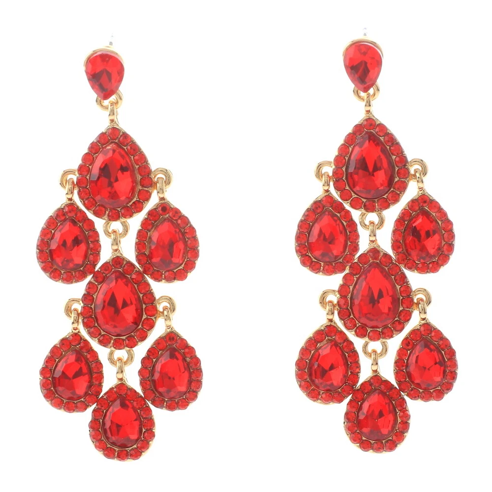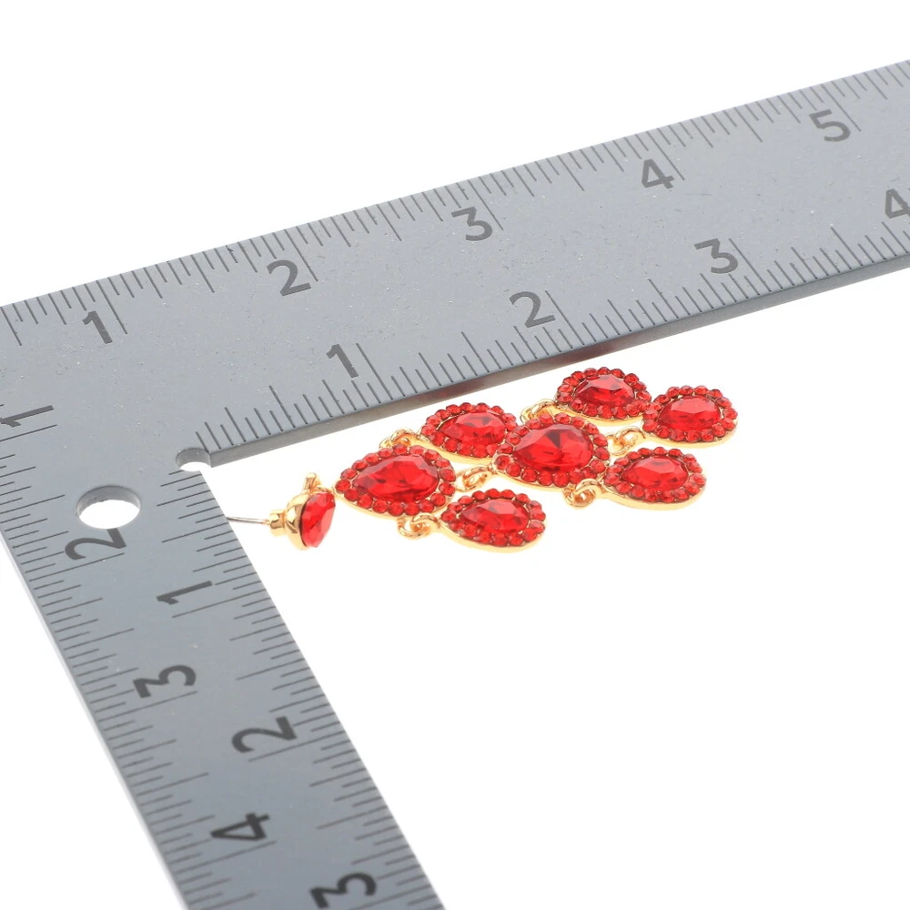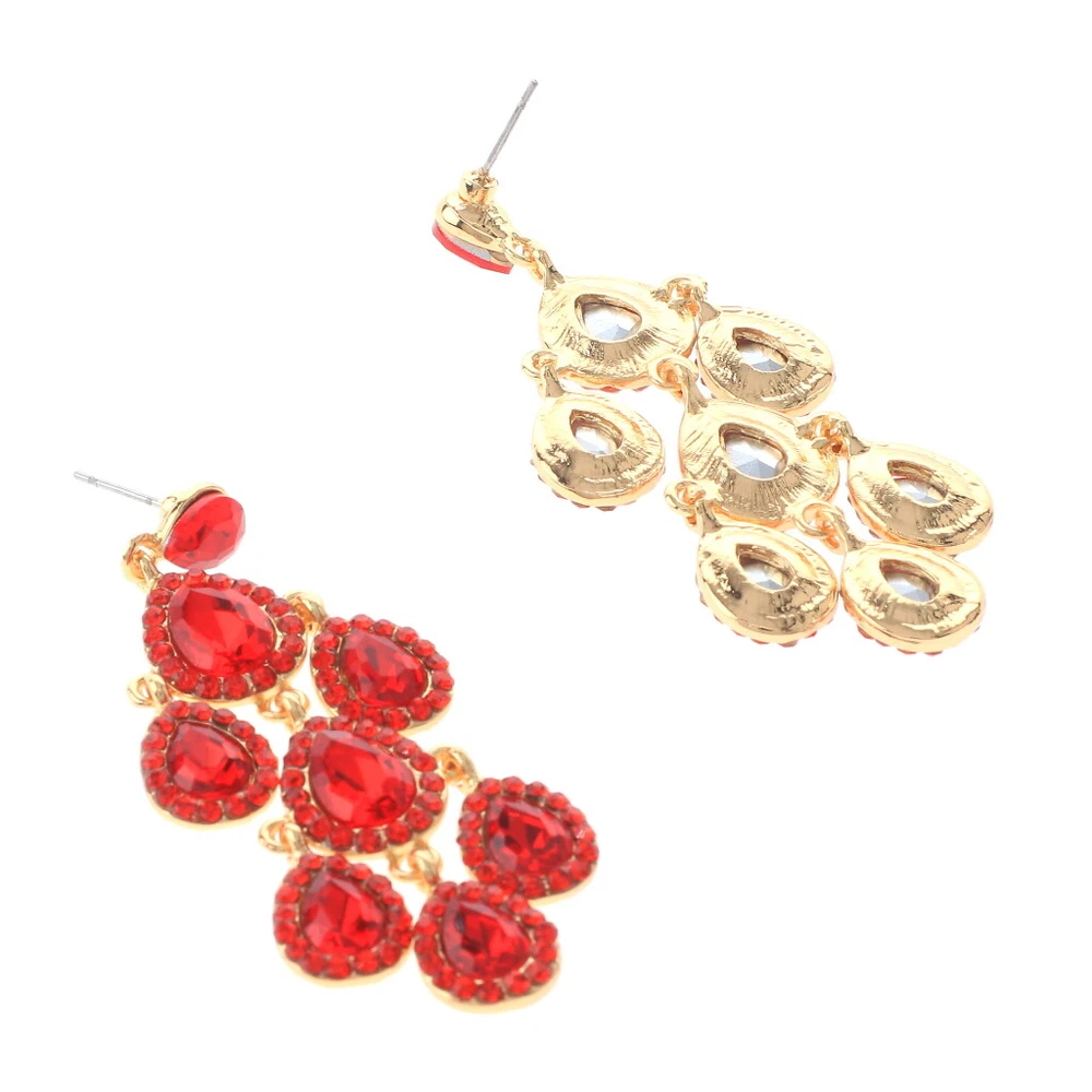 Gold Tone Metal Crystal Rhinestone Chandelier Post Earrings ER2601-RED