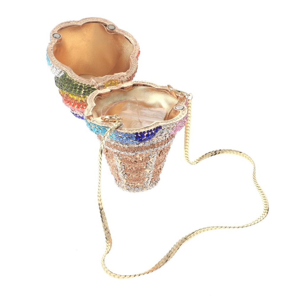 Gold Tone Metal Crystal Rhinestone Clutch Evening Bag / Approximate Size: 3.25 " L x 6.25" H x 3.25" W / 20" Long Chain Included / Color: Gold & Multi Condition: Brand New SKU: HB6247-MIX Color: Multi Design: Food & Drink All orders will ship from USA via UPS or USPS. We expect all local orders will receive the items within 7 business days or less depend the location. Worry free international shipment delay or custom duty fee.