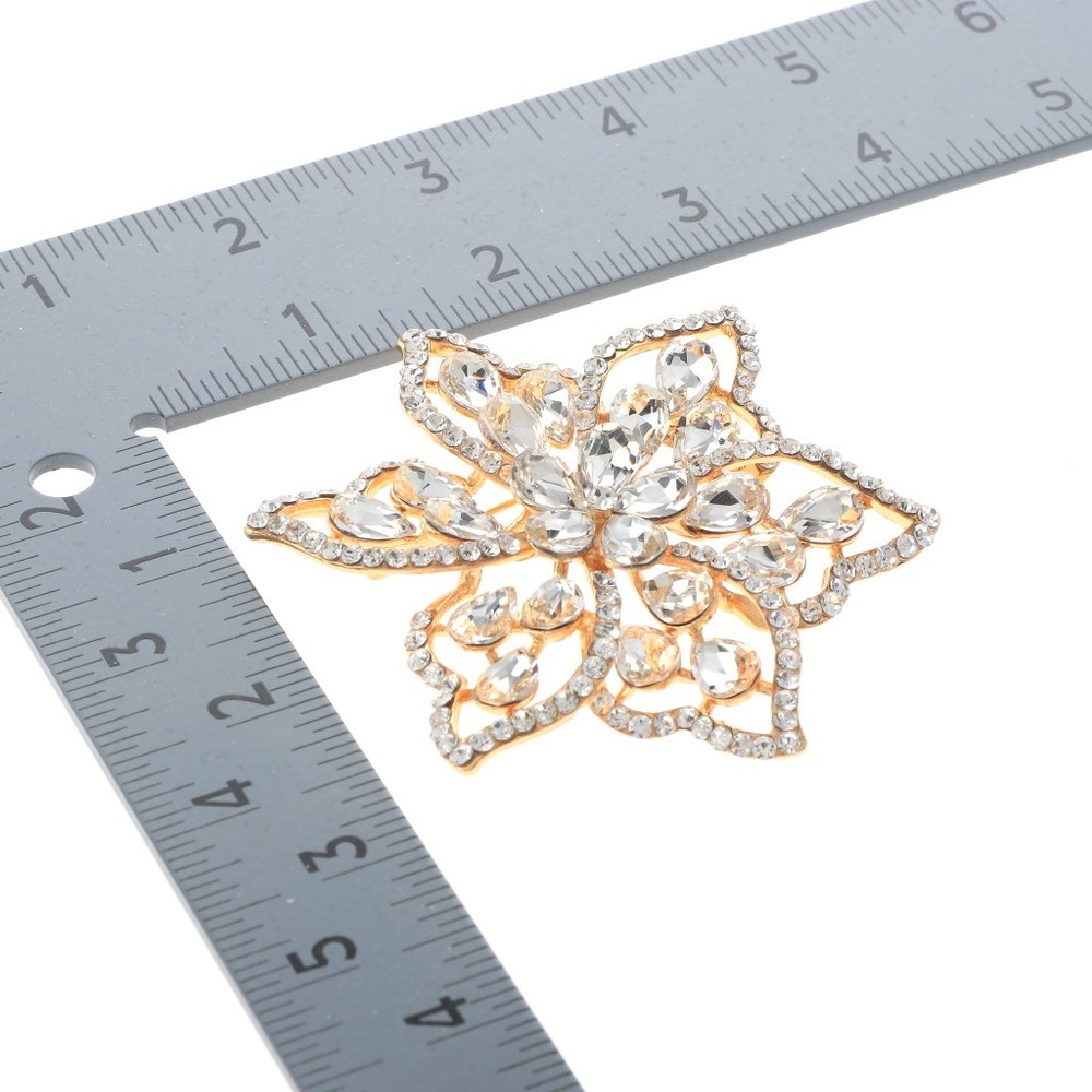 Gold Tone Metal Crystal Rhinestone Flower Brooch / Approximate Size: 3" L x 3" W / Rhinestone / Metal / Lead & Nickel Compliant / Color: Gold & Clear Condition: Brand New SKU: P1514-GCL Color: Clear Design: Flowers & Plants All orders will ship from USA via UPS or USPS. We expect all local orders will receive the items within 7 business days or less depend the location. Worry free international shipment delay or custom duty fee.