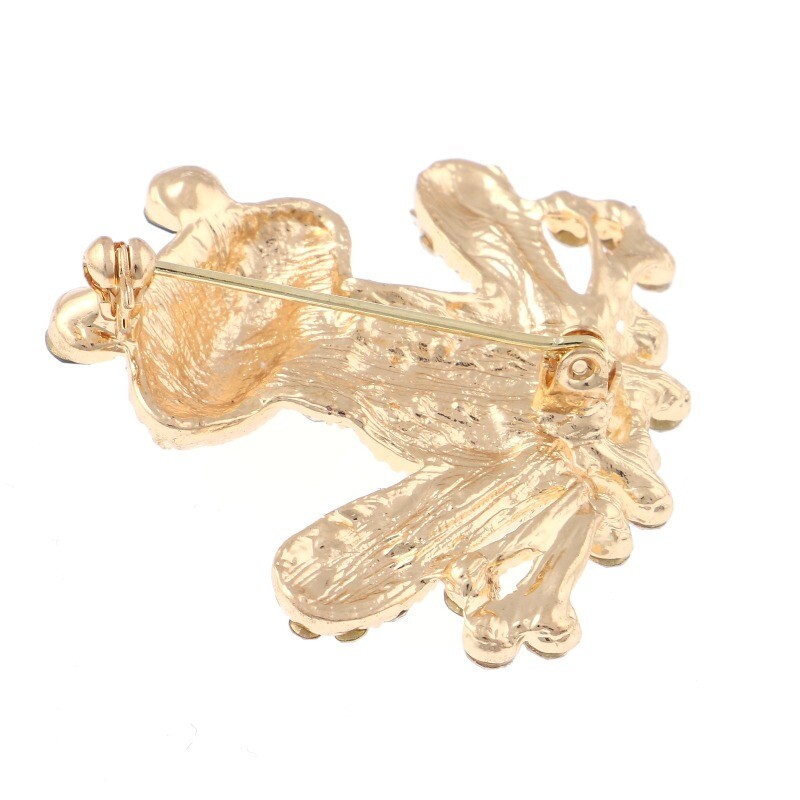 Gold Tone Metal Rhinestone Crystal Frog Brooch P1339-GAB