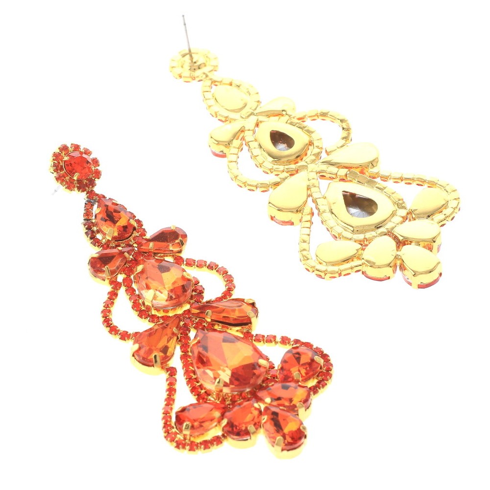 Gold Tone Metal Rhinestone Drop Post Earrings / Approximate Size: 3.5"L x 1.5" W / Rhinestone / Lead & Nickel compliant / Color: Gold & Orange Condition: Brand New SKU: ESE2871-ORG Color: Orange Design: All orders will ship from USA via UPS or USPS. We expect all local orders will receive the items within 7 business days or less depend the location. Worry free international shipment delay or custom duty fee.