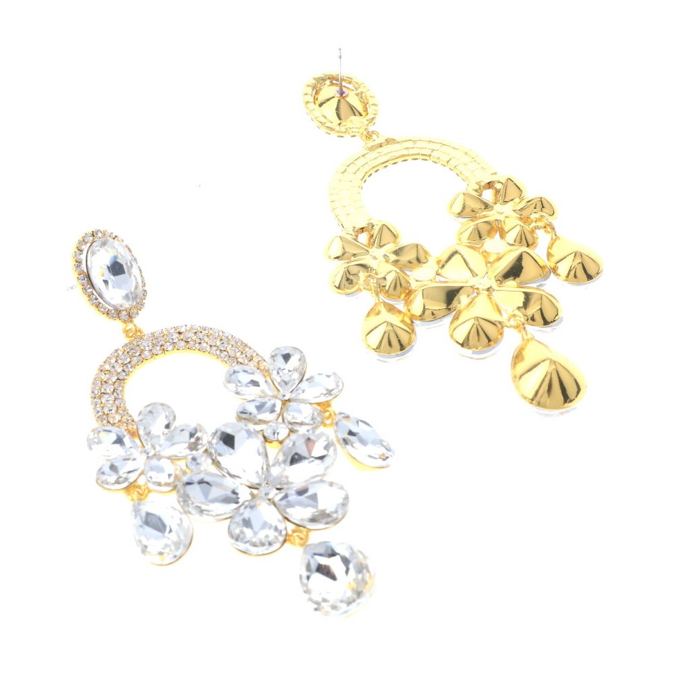 Gold Tone Metal Rhinestone Large Crystal Chandelier Post Earrings / Approximate Size: 4"L x 2" W / Lead & nickel compliant / Color: Gold & Clear Condition: Brand New SKU: ESE9967-GCL Color: Clear Design: All orders will ship from USA via UPS or USPS. We expect all local orders will receive the items within 7 business days or less depend the location. Worry free international shipment delay or custom duty fee.