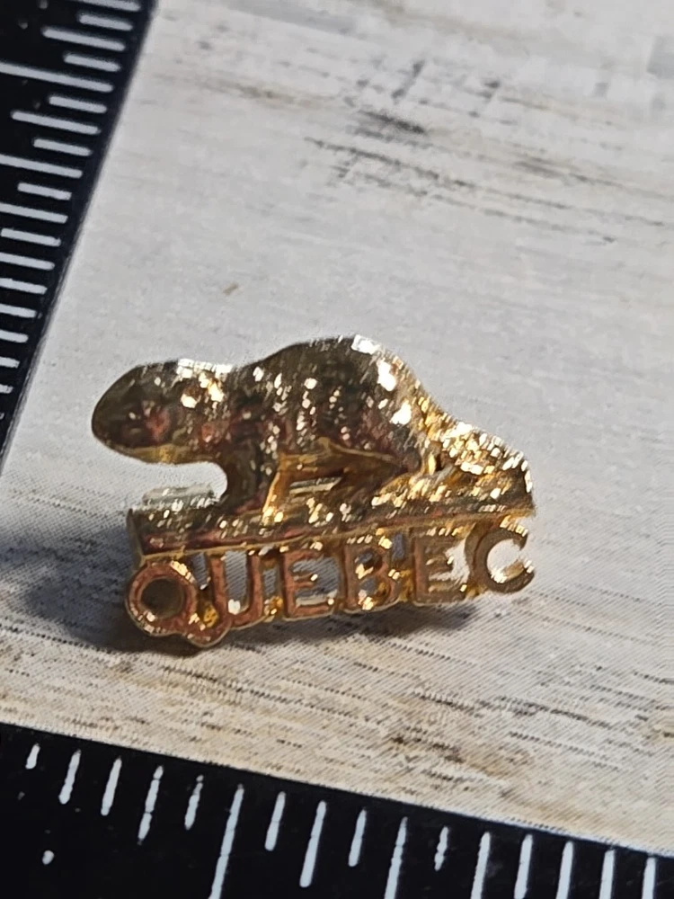 Gold Tone Quebec Beaver Travel Pin Hat Lapel O7
