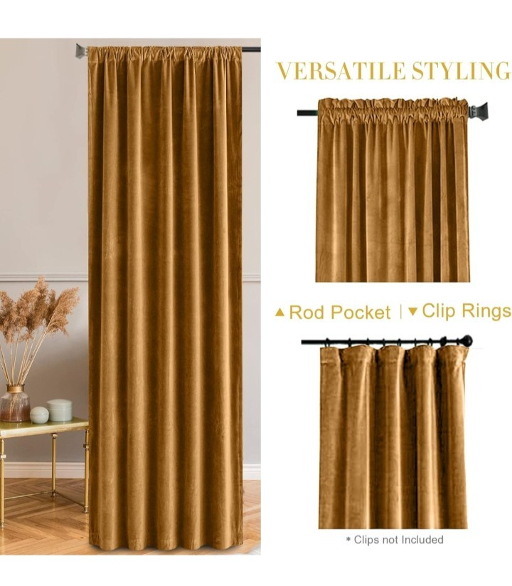 ONE Panel - Gold Velvet 90"L x 52" W Open box item According to stock info - 85% Blackout I ship out next business day!