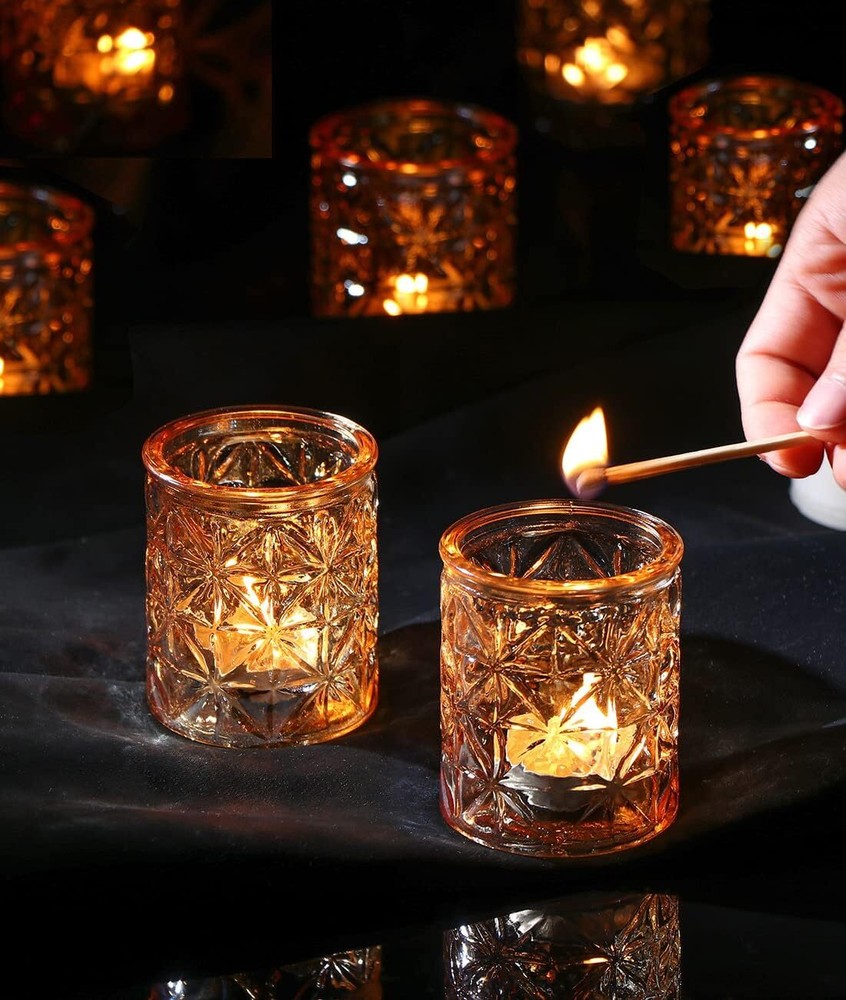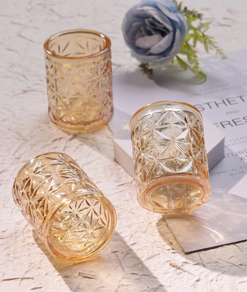 These gold votive candle holders are absolutely stunning! The electroplated finish gives them a luxurious shine that instantly elevates any table setting. Perfect for weddings, parties, or home decor, they add a touch of elegance without being overpowering. The set of 12 is great for bulk decorating, and the quality feels durable yet lightweight. They hold tea lights securely and create the most beautiful warm glow. Definitely worth it for the price—highly recommend!