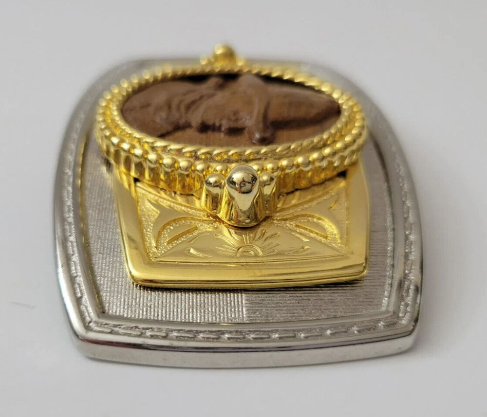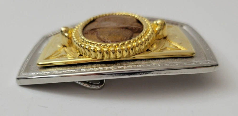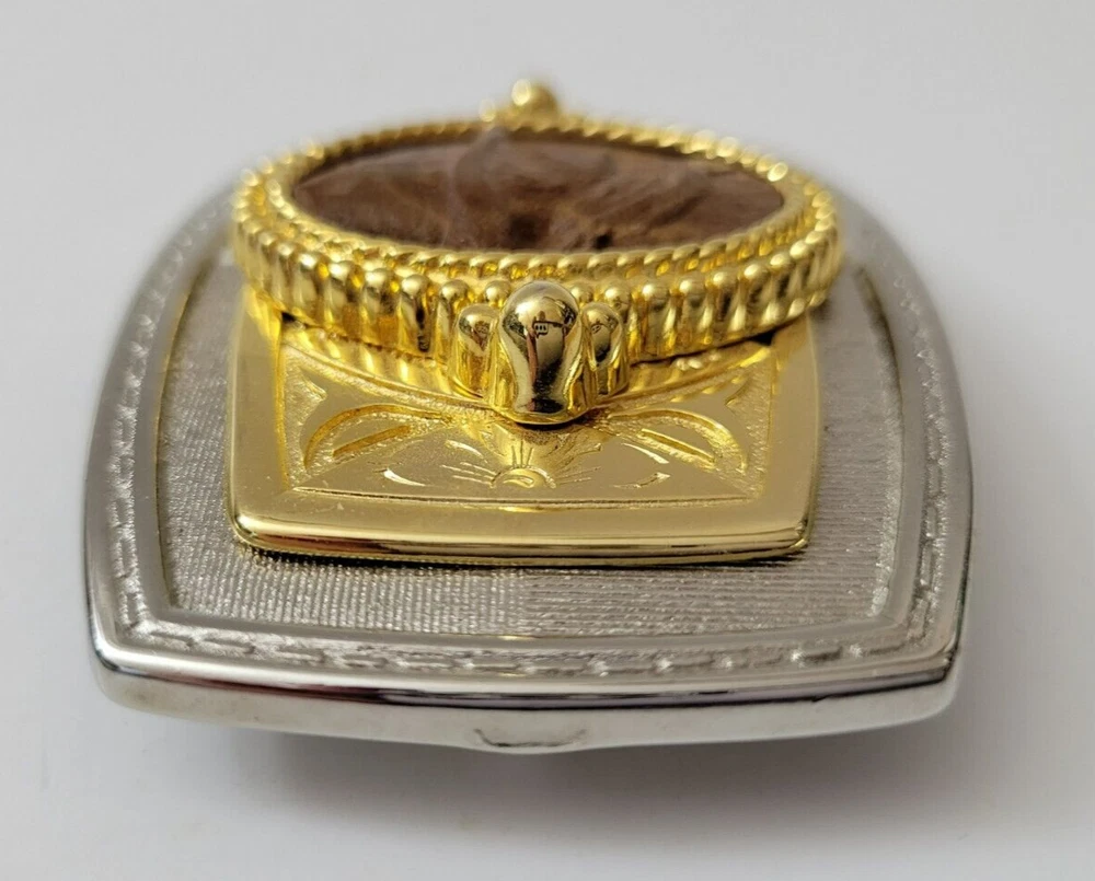 Gold and Silver Belt Buckle with Wooden Cowboy Portrait Metals Untested Each item is carefully packaged to prevent any damage and is shipped immediately with tracking.