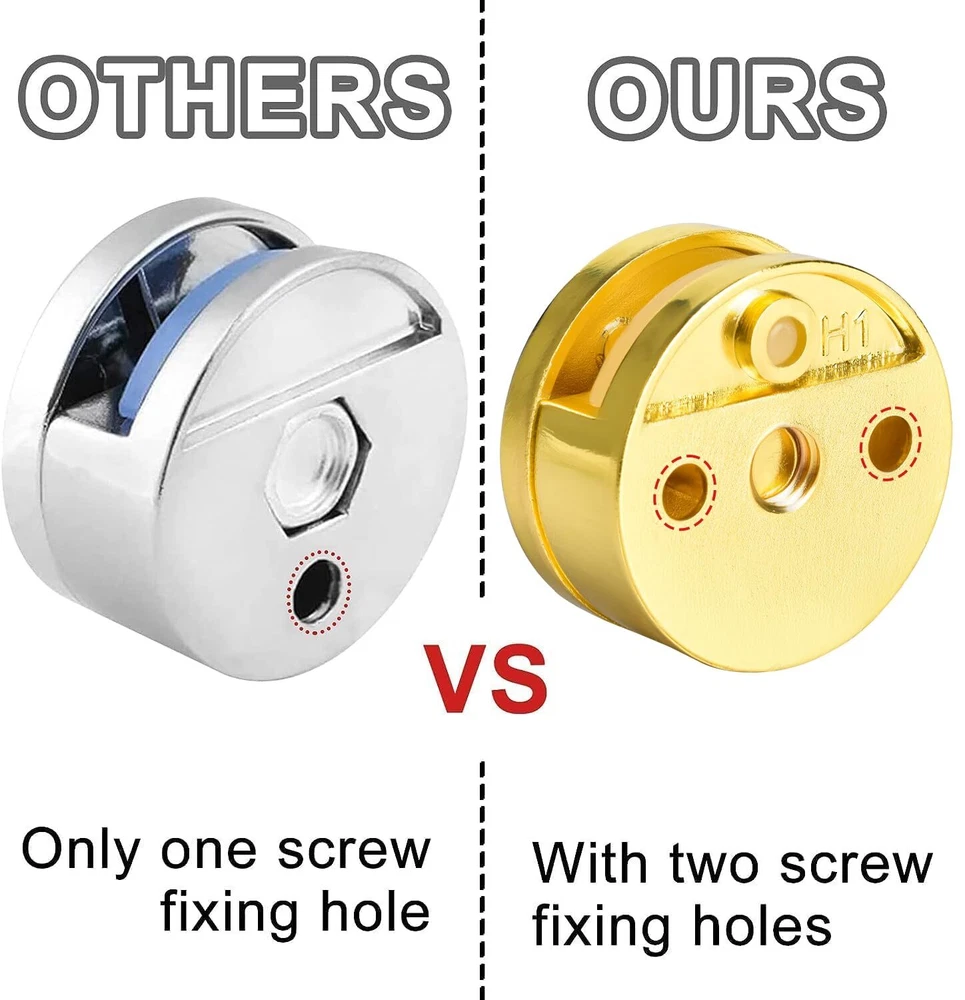 Golden Upgraded 3-5mm Frameless Mirror Mounting Hardware 8 Pack Dual-Screw Fixing Mirror Mounting Kit with Heavy Duty Long Screws and Anchors (8 Pack) Dual Screws Mounted Hardware: The old designs are only can be fixed by one screw, but each of this new gold upgraded mounting hardware can be fixed by 2 screws. So the mirror will be more firmly fixed on the wall. Heavy Duty Mirror Mounting Kit: With 16pcs of 1.4 in/35mm screws and 16pcs 1.1 inch/22mm anchors, the golden mirror mounting brackets are perfect for fixing heavy frameless mirrors which is 3-5mm in thickness. High End Surface Finish: The gold mounting clips are of chrome treatment with elegant surface, fitting your variety of decor themes and mirror/glass types. Easy to Install: Just use screw to fix the golden part (the thicker part) on the wall and clock wise rotate the front part to secure the mirror. Non-Slip Design: 8 Pack dual-screw fixing mirror mounting kit comes with soft plastic pads to secure the mirror more tightly and prevent it from slipping. SHIPPING - We offer FREE shipping on all orders! - We ship within 3 business days of payment, usually sooner - We use a selection of shipping services such as UPS, FedEx, USPS etc - We only ship to the lower 48 states, no APO/FPO addresses or PO Boxes allowed International buyers – please note: Import duties, taxes, and charges aren't included in the item price or postage cost. These charges are the buyer's responsibility. - Please check with your country's customs office to determine what these additional costs will be prior to bidding or buying. - We have confidence in our products, but if you are not fully satisfied please contact us within 30 days of purchase and you will get full refund. * Order Cancellation Policy ** You can return a product for up to 30 days from the date you purchased it. 1. The seller reserves the right to cancel the special case only due to eBay cancellation fee. 2. The decision of seller is the final. 3. The seller will respond to the cancellation request within 2 business days. Please wait for the result of cancellation. 4. In case the cancellation is not completed by some reasons, the buyer can follow the options below to get the refund. 4.1 The buyer can reject the item when it arrives. 4.2 The buyer can send the item back to the seller within 30 days If the buyer receives item (USA Shipment ONLY). The seller will provide the FREE return label to the buyer when the buyer opens " Return Item" case on eBay by using the reason as "Change my mind" ONLY. 5. When buyer has placed the order. The order will be processed and completed by automatic warehouse system within 5 minutes. In case that buyer sends the cancellation request after 5 minutes of placing the order, the request will be rejected. **Sending direct message to cancel the order is not allowed for every case.* Return Policy For the return case - If buyer would like to return the items for refund or replacement, please CONTACT SELLER to receive the free return label from seller. The refund or replacement will be processed with the tracking number of return label which is provided by seller only. The other ways of return which are not approved by seller will not be processed for the refund or replacement. CUSTOMER SERVICE - We try our best to make sure every customer is completely satisfied. - If there's a problem, feel free to message us! - We're happy to help.