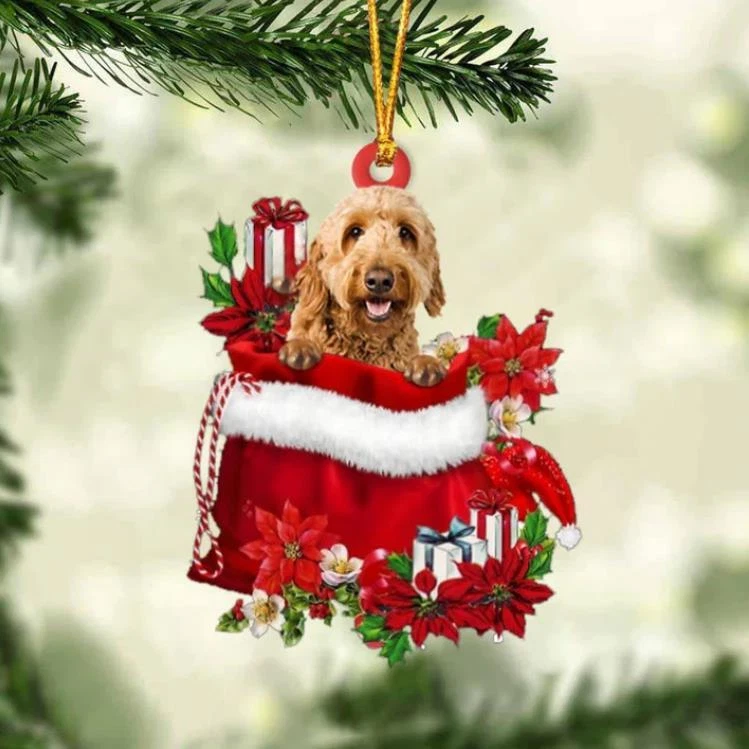 Goldendoodle In Gift Bag Christmas Ornament for Dog Lovers