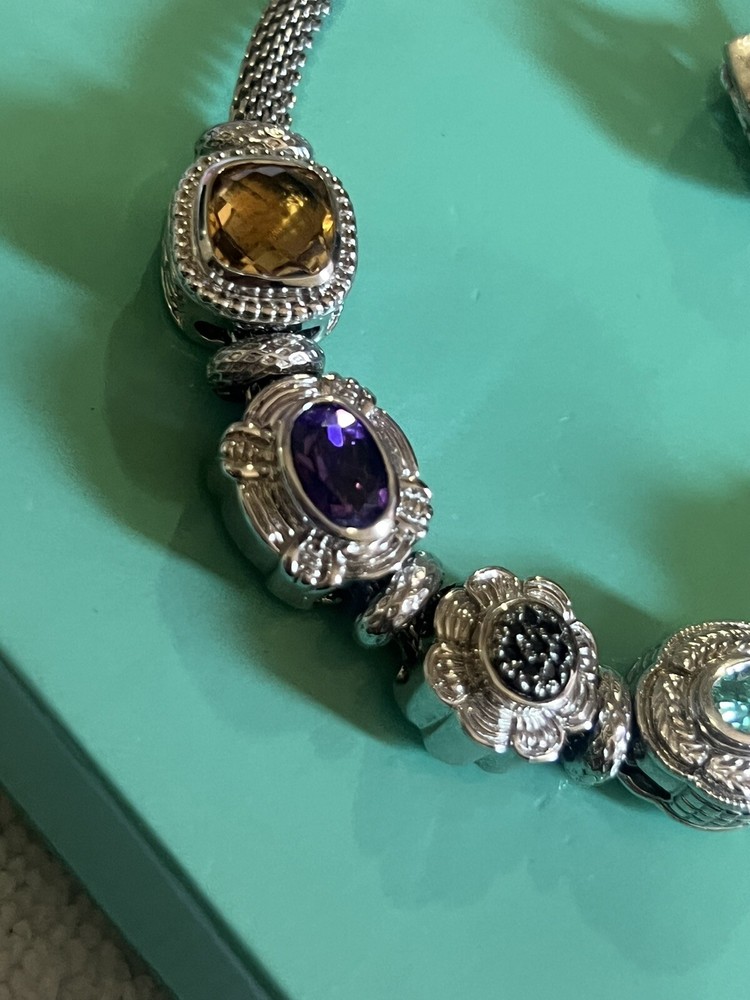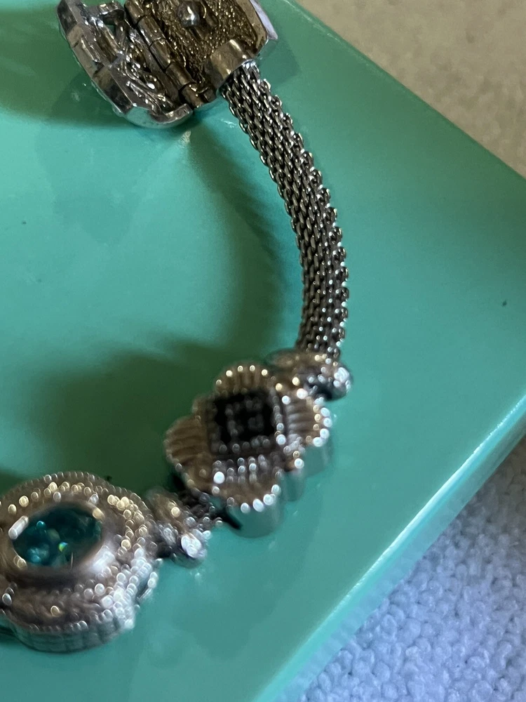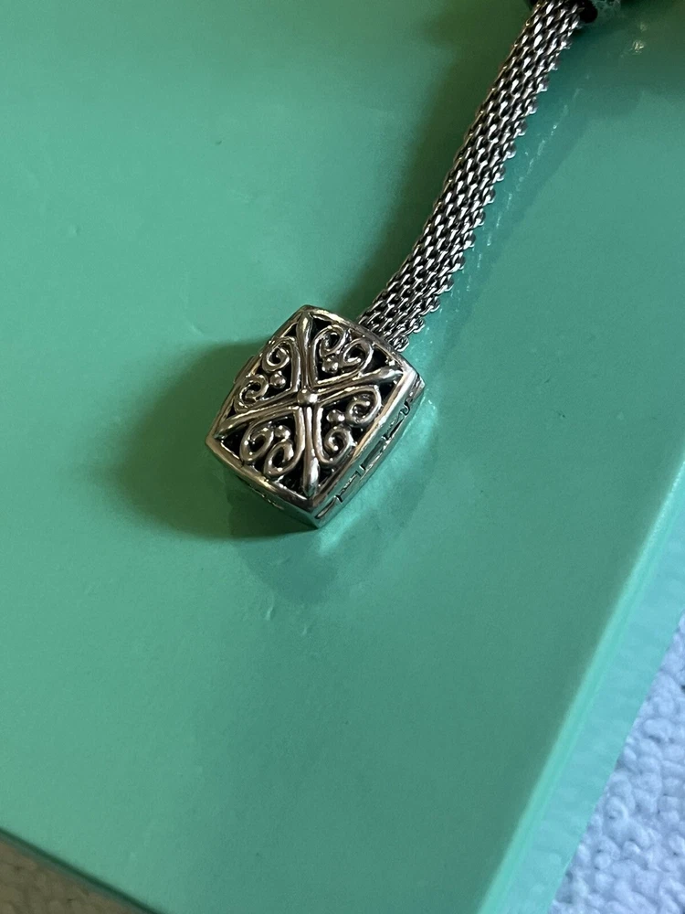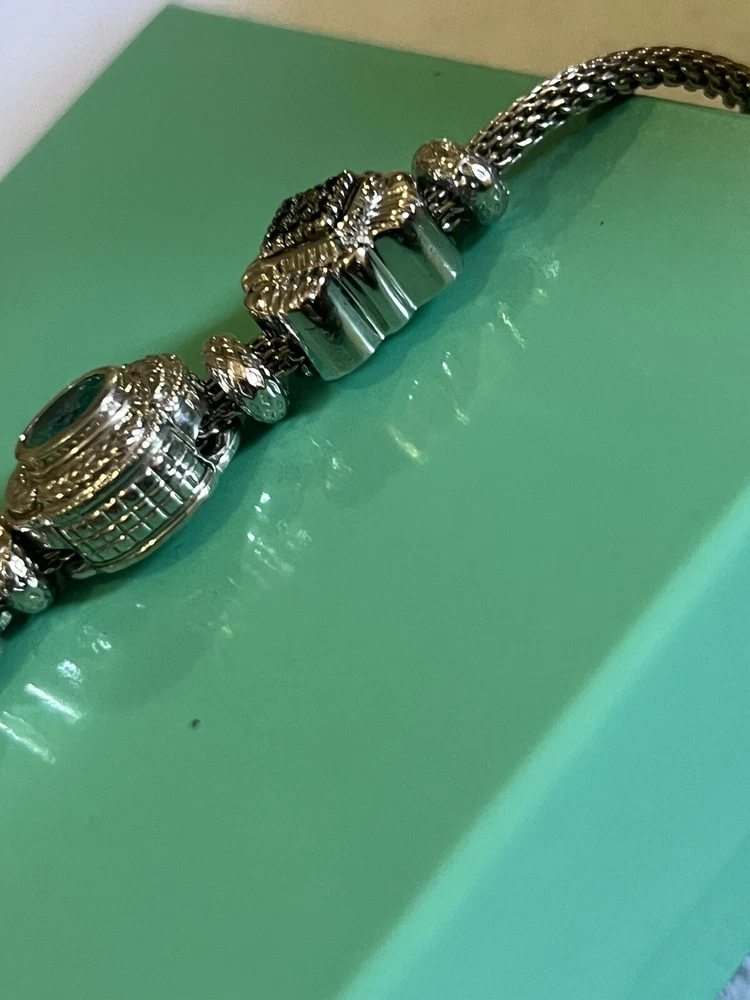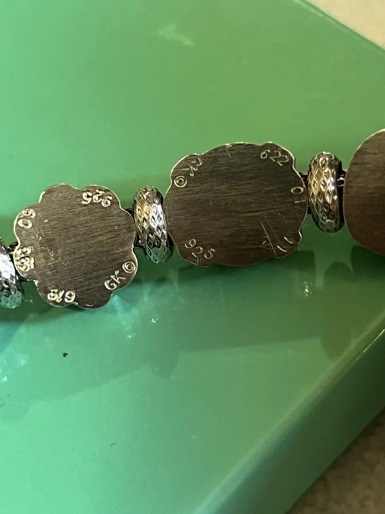 This stunning Goldman Kolber bracelet is a must-have for any jewelry collection. Crafted with excellent cut grade and a mesh chain type, this bracelet is both stylish and comfortable to wear. Its charm style and dividers make it a perfect accessory for any occasion. Included in the purchase are 5 slides charms and 6 dividers, adding a unique touch to the already gorgeous bracelet. Whether you're dressing up for a special event or adding a touch of elegance to your everyday look, this bracelet is sure to impress. Don't miss out on the opportunity to own this exquisite piece of fine jewelry. This item in excellent condition . Pictures are part of description. Over $1000 value for all most half price. The bracelet is bit over 7 inches long .