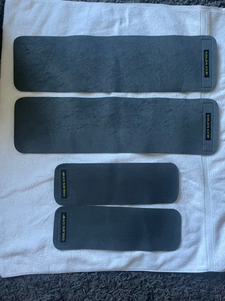 Get in shape with the Gold's Gym Slimmer Kit, a 4 piece set designed for home use and suitable for both indoor and outdoor training. The kit includes adjustable arm and thigh slimmers made of hand washable neoprene material, weighing only 9 ounces. The black slimmers have no signature or vintage features and are perfect for gym and training exercises to target the arms and thighs muscle groups. This non-custom bundle kit comes with the necessary items to get started on your fitness journey. Please see measurements in photo