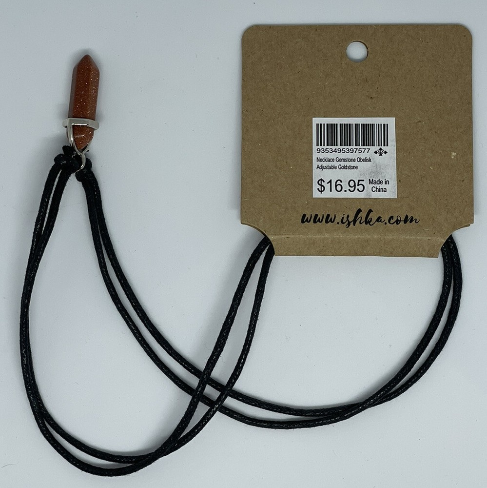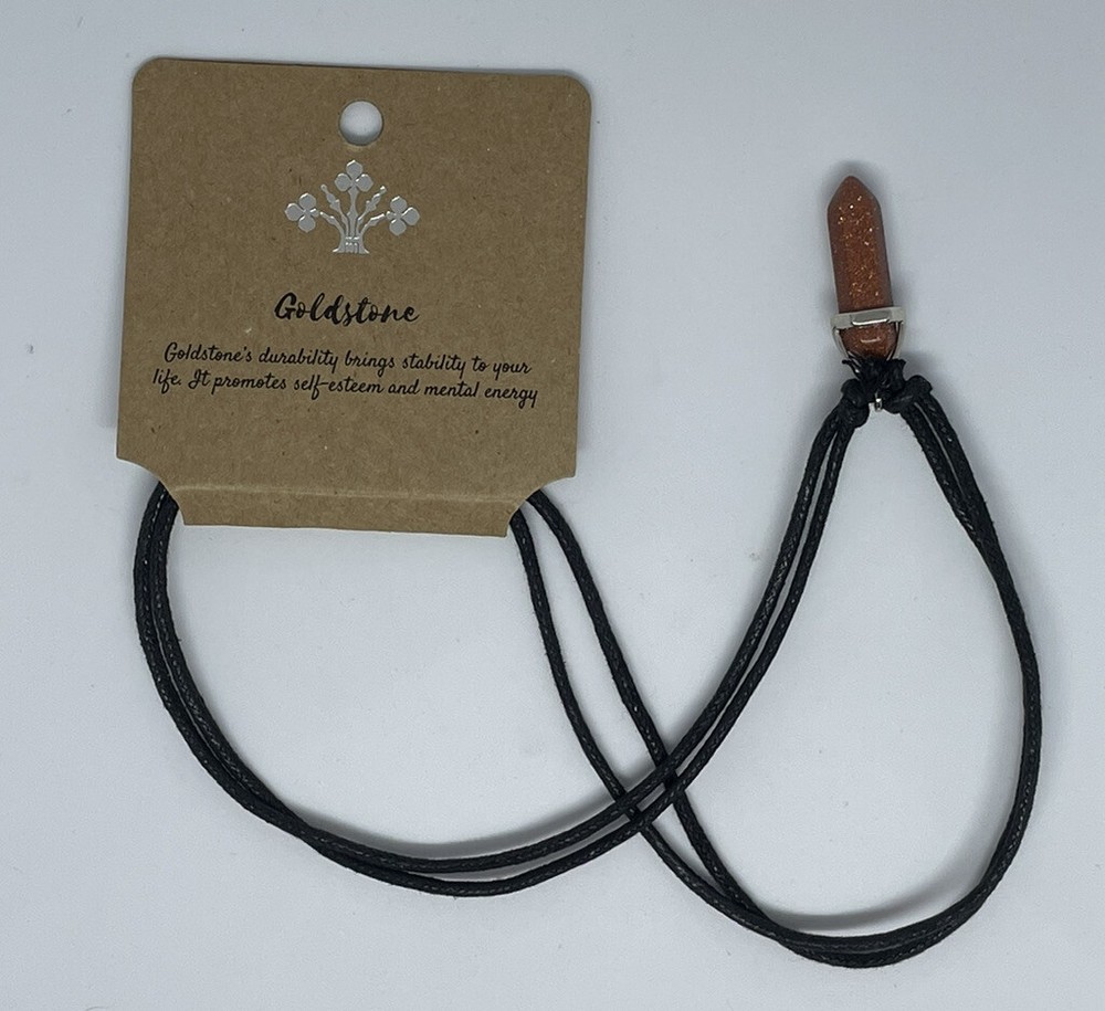Adjustable Necklace Gemstone Obelisk - Goldstone. Reads - “Goldstone’s durability brings stability to your life. It promotes self-esteem and mental energy” Lightweight and versatile with a simple setting. Give yourself an indie look and show off your love of natural elements. Please Note, due to the nature of the stone, colour may vary from photos shown. RRP: $16.95