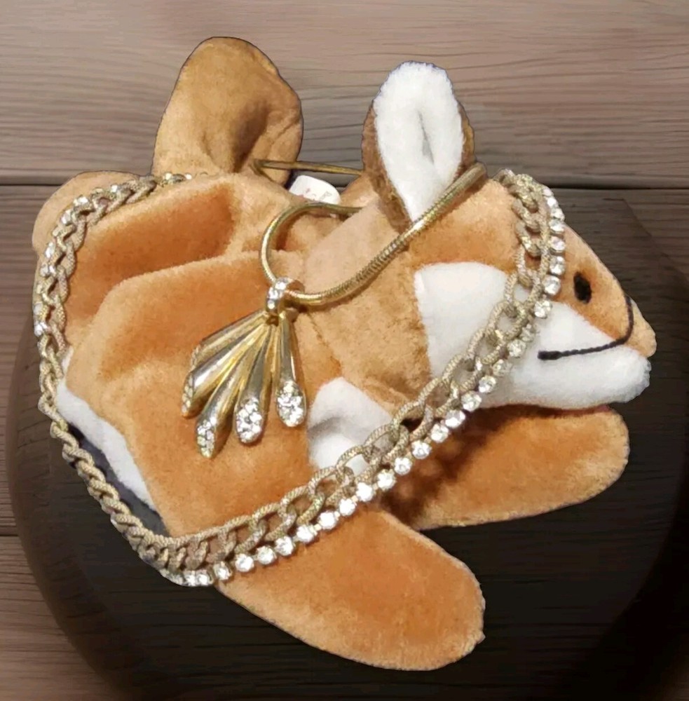 This stunning necklace features a beautiful white rhinestone that sparkles in the light. The piece is made of multi-tone gold and has a flush setting style. The necklace has the 5 finger fan pendant, which is 17 inches in length, and the double chain textured chain is adjustable 15" long. Unfortunately, Sly the Fox is not for sale he is my fashionistas maskscot model. If you have any questions, please feel free to contact me on eBay messenger! Very motivated seller and will accept any respectable counter offer sent in my direction! Thank you so much for reading this post from Foxy Stang Upcycler Store! 🦊Have A Wonderful Foxy Stang Day!!!!🦊