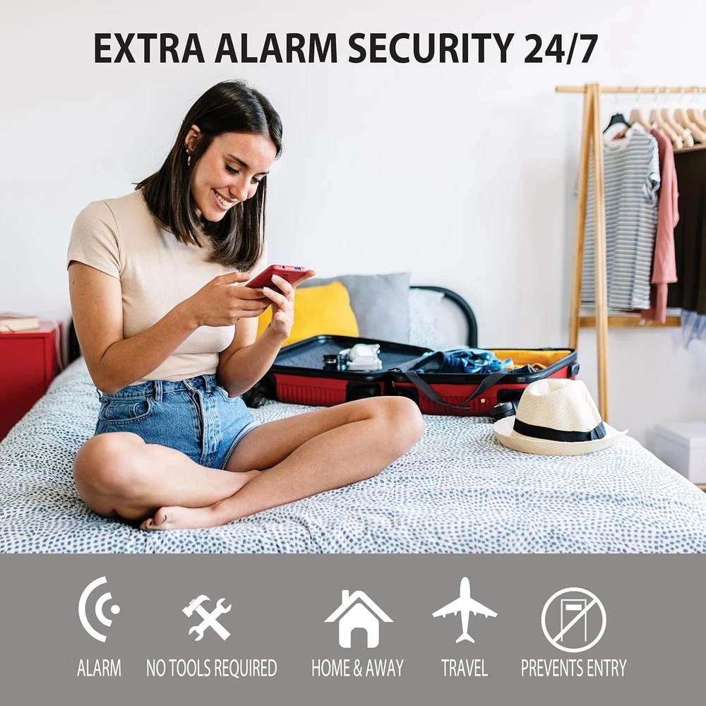 This little red alarm is a game-changer for travel and home security! Super easy to use—just wedge it under any door, and the loud alarm instantly deters intruders if the door opens. No tools or setup needed, and the compact size fits perfectly in my bag. The travel pouch keeps it safe, and the bright red color makes it easy to spot. Peace of mind wherever I go!
