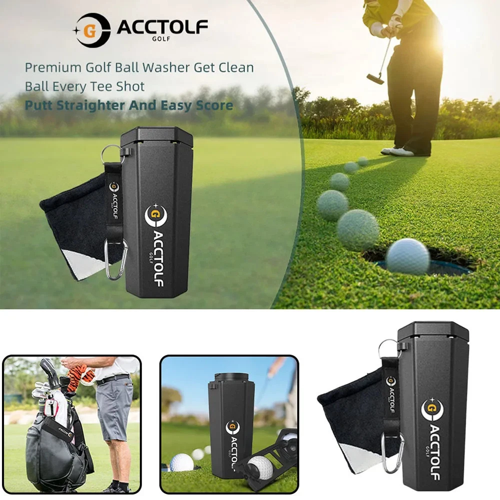 Golf Ball Washer Cleaning Machine With Towel Reusable Cart Cup Holder Portable Golf Bag Cart Cleaner Accessories for Gift Features: *HIGH QUALITY MATERIAL: This golfs ball cleaner is made of high quality material and the rubber sealed on the lid ensures no leakage and easy to use. *UNIQUE GOLFS CLEANER: Built-in medium hardness brush, when you put a dirty golfs ball into the golfs cleaner, moving it up and down to clean it thoroughly. *GOLFS ACCESSORIES: The perfect golfs accessory to meet the cleaning needs of all golfers. *EASY TO CARRY: The portable golfs ball washer comes with a buckle to hanging on your golfs bag or mount on the cup holder of your golfs cart. Easy to store and travel with. *GREAT GIFT: This golfs cleaner is a great gift for golfers for Christmas, birthdays, Thanksgiving and other holidays. Notice: 1.Actual color may be slightly different from the image due to different light effect 2.Please allow 1-3cm deviation due to manual measurement Description: Material: Plastic Size: 10*10*20cm Include: 1 x Portable Golfs Ball Washer