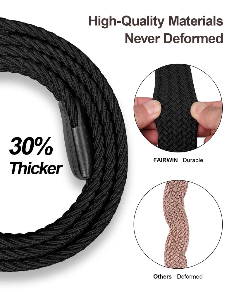 👉【Full-Adjustable】-Pretty much perfect no holes so unlimited adjustability & the baided strech belt works perfectly for active use. 👉【Casual Belts for Men and Women】- This versatile belts use in camping, golfing, hiking, fishing, climbing, traveling, field training etc. 👉【You are the Fashion Guy!!!】- Mutilcolor strips western woven belts, Very stylish to match your jeans, shorts, streetwears or golf wears Etc. 👉【Soft Material Mens Belt】- Made of 60% mulberry silk and 41% polyester as the main fabric of canvas slide belts, which is rich in elasticity and breathable, has smooth tactility. 👉【Nice Gifts】- The designer belts for men is your gift belts for your family and friends Christmas present! Men and Women everyday belt, the utility belts makes long lifetime and Guarantee available