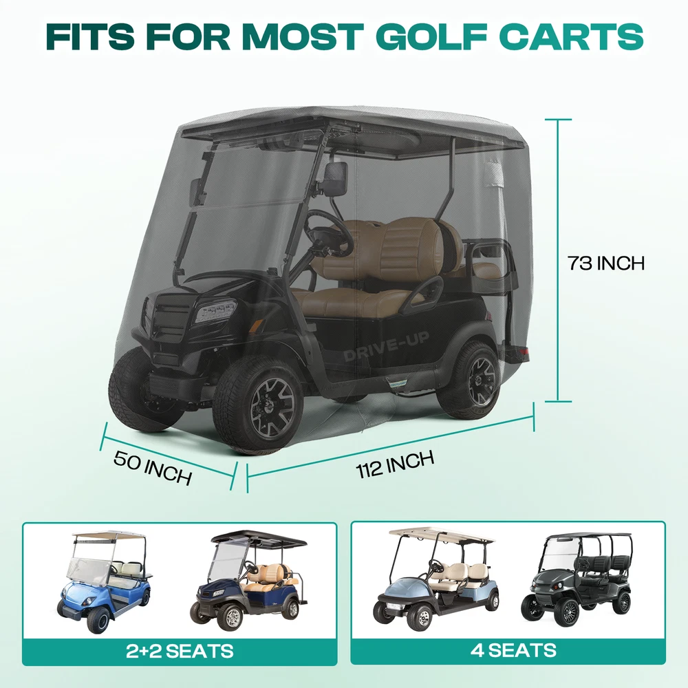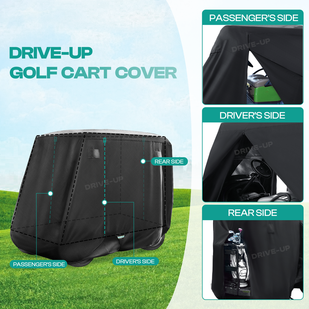 STORE HOME ALL ITEMS ABOUT US FEEDBACK CONTACT US click thumbnails above to enlarge Golf Cart Cover Black 600D Waterproof 2/4 Passengers for Club Car EZGO YAMAHA 【Fits the Following Cart(s)】 Golf cart covers upgraded large size: 112" (L)×73" (H)×50" (W). Suitable for all 2+2/4 seat golf carts, perfectly compatible with Club Car,EZGO,YAMAHA golf carts 【High-Quality Material】 Made of 600D Oxford cloth with a polyurethane coating. The club car golf cart cover is thicker, more durable, and waterproof up to 1000PA, ideal for long-term outdoor use 【Windproof and Stable】 Equipped with elastic band around the perimeter and reinforced buckle at the bottom. It can be firmly fixed even in strong wind or bad weather,ensuring the golf cart covers ezgo is stable and does not shift 【Convenient Design】 Three zippered doors allow easy access without removing the yamaha golf cart cover. Four ventilation holes prevent moisture buildup,keeping the interior dry and clean. Reflective strips enhance visibility and safety in low light 【Full Protection】 Effective protection against rain, dust, tree resin, bird droppings, snow, frost and UV rays, avoiding fading and damage to the paintwork and preventing scratches, keeping the bodywork looking as good as new.Providing high quality golf cart cover is our pursuit. If you have any questions please let us know High quality and durable A new driving experience Upgrade your golf cart Easy to install Delivery Terms of return After-sale Payment Delivery -Our warehouse located in GA, US. -We will process your package within 1-2 business days after your payment. It will take about 2-7 working days to reach to you. -Gentle Reminder: the following addresses are not available for delivery - Alaska, Guam, Hawaii, Puerto Rico. APO/FPO, US Protectorates. Terms of return -Return within 30 days from the purchase date - item must be unused and in original condition (packaging + tag included) -We will offer refund or replacement according to you massage left after received and have the returned item checked. After-sale -Comes with 1 year warranty. -We will always stand behind our products and strive to provide more variety of cart parts and golf accessories. -Please feel free to turn to us for any question regarding installation or the product. Payment -We accept payment through PayPal and all other Ebay approved forms of payment. -Payment must be made within 8 Working days after the auction/bid ends, or eBay will open Unpaid Item case automatically later. -When you have any questions about payment, shipping or product, Please send us an ebay message.Thank you. PRODUCT CATEGORIES Club Car Part YAMAHA Part EZGO Part Universal Part ABOUT DRIVE-UP 2018 Founded in 2018 73+ professional employees 15+ manufacturing years 3000+ factory area 80+ global sales country WHY CHOOSE DRIVE-UP ? Free shipping Free shipping on all domestic (u.s.) deliveries - no more extra charge included Professional service and guidance Provide installation guidance service After-sale Comes with 1 year warranty. USEFUL LINK STORE HOME HOT ITEMS ABOUT US FEEDBACK CONTACT US Copyright © DRIVE-UP. All Rights Reserved. PAYMENT