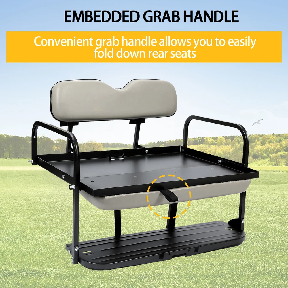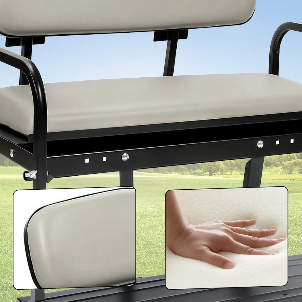 New Golf Cart Off-White Flip Folding Rear Back Seat Kit For EZGO Marathon Pre-94 FIT FOR: For EZGO Marathon Pre-1994 Specification: Condition: 100% Brand New Color: Off-White Material: Steel Frame+Synthetic Leather Seat Surface Finish: Powder Coated Installation Method: Screw Mounting Hardware Included: Yes Installation Instruction Included: Yes Size: Pls see the pic for reference Features: The unique design makes your vehicle look stylish and more eye-catching on the road. It adopts high-quality steel frame + leather seat, which is durable and wear-resistant, and has a long service life. The frame exterior is made of powder-coated steel that resists rust and corrosion, and resists the effects of harsh weather. Install with screws, it won't take up much of your time. Package Includes: 1 X Rear Back Seat Kit Mounting Hardware Included Installation Instruction Included Shipping: All items will be shipped out in 1 business day, no expedited service available. We ship our items to USA only(Does NOT include Hawaii, Alaska or Puerto Rico, PO Boxes/APO's). Shipping Notes: We use multiple warehouses and will select the nearest warehouse for delivery according to your order address and our inventory, Thank you for your cooperation. Contact us: Any Questions, Just feel free to contact us on eBay. We will reply you in 24 hours.