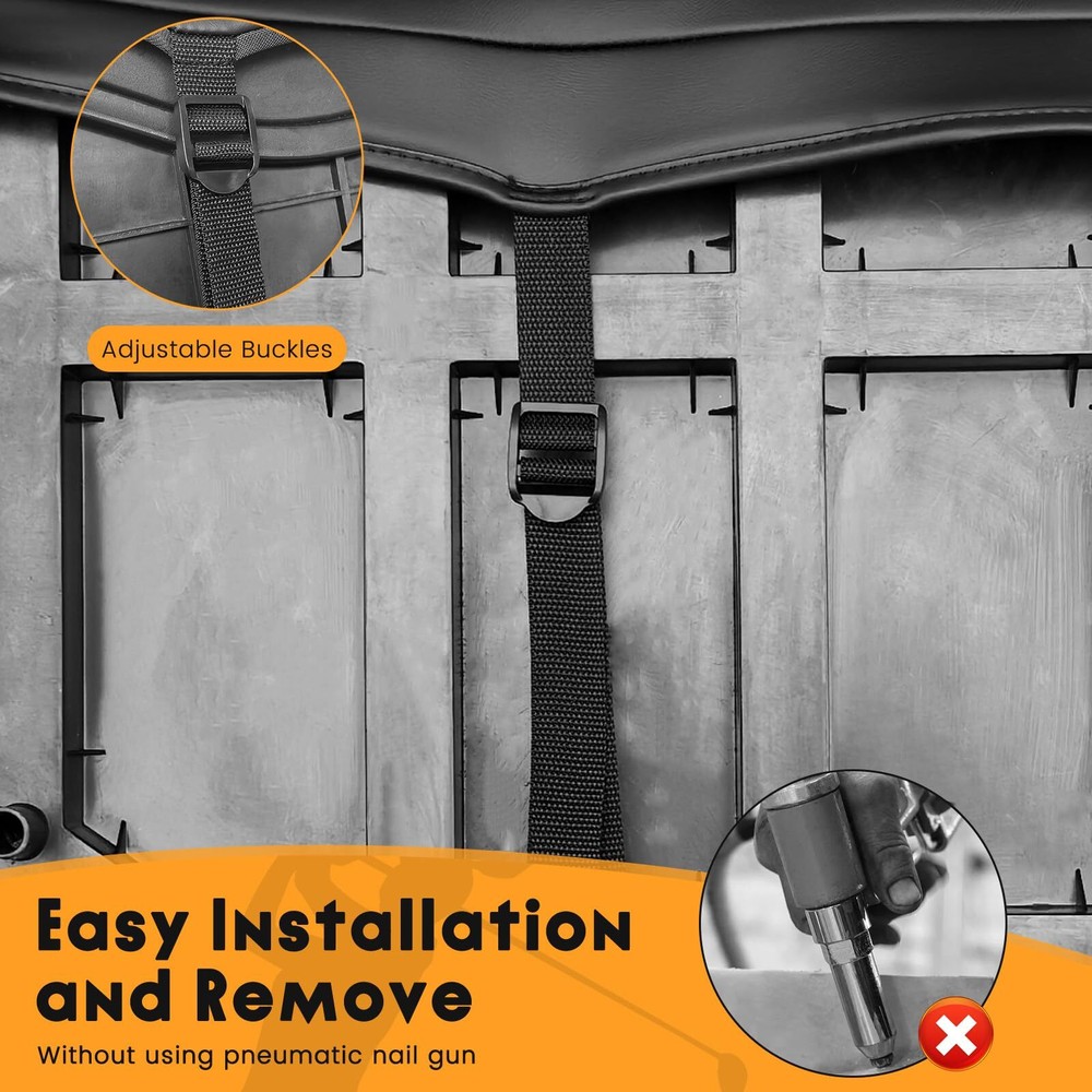 Golf Cart Seat Covers for Club Car Precedent Front Standard Seat,Breathable Air Mesh and Leather,Adjustable Buckles and Drawstring No Nails Required,Front Storage Pouch(Black) 【Fit Models】Golf Cart Seat Cover for Club Car Precedent Front Standard Seat. Does not fit touring-style seats or plush seats. (Please verify your golf cart seat measurements before purchasing.) 【Premium Quality】 Fit club car precedent seat covers featuring distinctive mesh cloth with PVC Leather, our golf cart seat cover features a distinctive mesh design for enhanced breathability. Built to last, it withstands daily wear and tear while ensuring long-lasting durability and optimal performance. The precision fit eliminates wrinkles and loose areas for a seamless appearance. 【New Design】Our golf cart seat covers combine two premium materials to provide ideal temperature regulation - keeping you warm in winter and cool in summer for year-round comfort. 【Front Storage Pouch】 Designed with two spacious pockets, this front seat cover provides handy storage for your phone, keys, and other small items while driving. 【Easy to Install and Refreshing】 Installing our golf cart seat cover adjustable straps and retractable buckle design, which help you install and take down easily in few minutes, no need for using gun nail and removing the aged vinyl seat cover. A full set back and seat covers will fresh your aged golf cart seats Golf Cart Seat Covers for Club Car Precedent Front Seat Shipping We offer FREE shipping on all orders! We ship within Three business days of payment, usually sooner. We use a selection of shipping services such as UPS, FedEx, USPS etc. We only ship to the lower 48 states, no APO/FPO addresses or PO Boxes allowed. Local pickups and combined shipping options are not provided at this time. Return You can return a product for up to 30 days from the date you purchased it. Any product you return must be in the same condition you received it and in the original packaging. Please keep the receipt. Payment We accept payment by any of the following methods: PayPal Please pay as soon as possible after winning an auction, as that will allow us to post your item to you sooner! Feedback Customer satisfaction is very important to us. If you have any problem with your order, please contact us and we will do our best to make you satisfied. Contact Us If you have any queries, please contact us via ebay. We usually respond within 24 hours on weekdays. Please visit our eBay store to check out other items for sale! Thank you for shopping at our store.