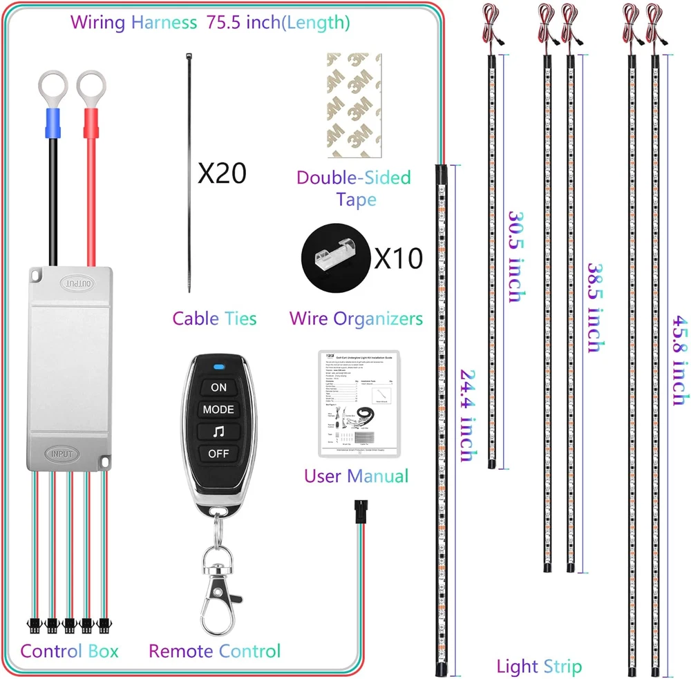 Store New Arrivals Add to Favorite View Feedback Contact Golf Cart Underglow LED Light Strip Kit with Canopy Lights, 24 Modes Glow Neon Underbody Lighting with Wireless Remote Control, Sound Active, Water Resistant Flexible Tubes 6 Pack Description Included Components function(f) {var _np=(window.P._namespace("DetailPageProductOverviewTemplatesJava"));if(_np.guardFatal){_np.guardFatal(f)(_np);}else{f(_np);}}(function(P) { P.when('A').execute(function(A){ A.on('a:truncate:po-attribute-truncate-5:updated', function(data) { var isTruncated = !data.truncateInstance.getIfTextFits(); var seeMoreElement = document.getElementById('po-attribute-see-more-id-5'); if(seeMoreElement) { seeMoreElement.style.display = isTruncated ? '' : 'none'; } }) }); })); (2) 45.8 Inches LED waterproof strip lights, (1) 38.5 Inches LED waterproof strip light, (2) 30.5 Inches LED waterproof strip lights, (1) 24.4 Inches LED waterproof strip light, Remote Control, Control Box, Harness, Installation Accessories (Small Clips, Cable Tie, Screws, Tape), User Manual See more Vehicle Service Type Golf Cart Voltage 66 Volts Form Factor Strip Number of Pieces 6 Color 6 PCS (Incl. Canopy Lights) Light Source Type Neon Fit Type Universal Fit Auto Part Position Left Water Resistance Level Water Resistant Connectivity Technology RF Item Weight 1.94 pounds Batteries 1 LR44 batteries required. (included) Recommended Uses For Product Vehicle Exterior Special Features Waterproof, Multi-Color Size 6 Pack(Incl. 2 Pack Canopy Lights) Special Feature Waterproof, Multi-Color Package Dimensions 10.43 x 10.31 x 2.24 inches Remote Control Included? Yes Manufacturer Direct Universal neon underglow LED Lights with Canopy Lights compatible with any Electric or Gas powered golf cart. Atmosphere decoration light good for dressing up your carts in Halloween Parade, Christmas Day, New Year Celebration, etc. 24 Modes: 7 Solid Color, 7 Color Fade, 6 Colorful Fade/Flow, 3 Colorful Cyclic (Flash/Chase/Strobe), and 1 Music Sync. Solid Colors: Red, Blue, Green, Purple, Light Blue, Yellow and White. 4 buttons on the wireless remotes control: ON / OFF / Music / Color Mode. You can switch modes to color cycle, gradient mode, flash mode or music sync. Package includes: (2) 45.8 Inches, (1) 38.5 Inches, (2) 30.5 Inches, (1) 24.4 inches LED waterproof strip lights, Remote Control, Control Box, Harness, and Installation Accessories (Small Clips, Cable Tie, Screws, Tape), User Manual An Extra voltage converter/reducer is NOT required when connect the control box to 12V-66V batteries. To tighten the connection, you may need a 14mm wrench(not contained in package). Easy to install with flexible LED strips that can bend to any shape. Product Description Compare & Choose the One You Like Simple Installation 7 Color with 24 Modes - 2 Strips High Cost Performance 7 Color with 24 Modes - 4 Strips Full Features 7 Color with 24 Modes - 6 Strips Incl. 2 Canopy Light Strips Drive With Colors Install the 2 strips (86 Inches long) on the side of your cart's chassis. Colors & More Strips Plus 2 light strips that brighten the front and rear of the cart chassis. Brighten The Whole Cart Plus 2 longer light strips that brighten the cart's canopy. ABOUT US We offer the best prices around on high quality products. Our E-store includes media such as books, movies, music and games while offering electronics, toys, sporting apparel, clothing, tools, general home, garden items and more. SHIPPING We are always working hard to ensure your package arrives as soon as possible. Please understand that some factors like weather, high postal traffic, and the performance of shipping companies are outside of our control. We offer free shipping to the lower 48 states and ship within 2 business days of payment, usually sooner. We do not accept P.O. Boxes. Please provide a physical address. For shipping outside of the continental USA, we only use eBay's Global Shipping Program.The item is shipped to KY and then sent to the rest of the world. International customers are responsible for all duties and taxes. Continue to check out in order to calculate costs for shipping the item to your country. Messages regarding eBay's Global Shipping Program MUST be directed at eBay EXCLUSIVELY. RETURNS We offer a 30-Day Return Policy on items which you are not completely satisfied with. You have the option for a full-refund or an exchange of the item. No returns are available on items shipped outside of the USA. PAYMENT We accept PayPal. CONTACT US This page content is yet to come Please ad us to your favorite seller and visit again later Thank You CUSTOMER SATISFACTION We try our very best to make sure every customer is completely satisfied. If there's a problem, message us! We're happy to help. WE ACCEPT Copyright © 2021 AutoDS. | All Rights Reserved