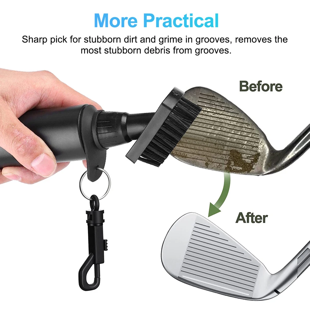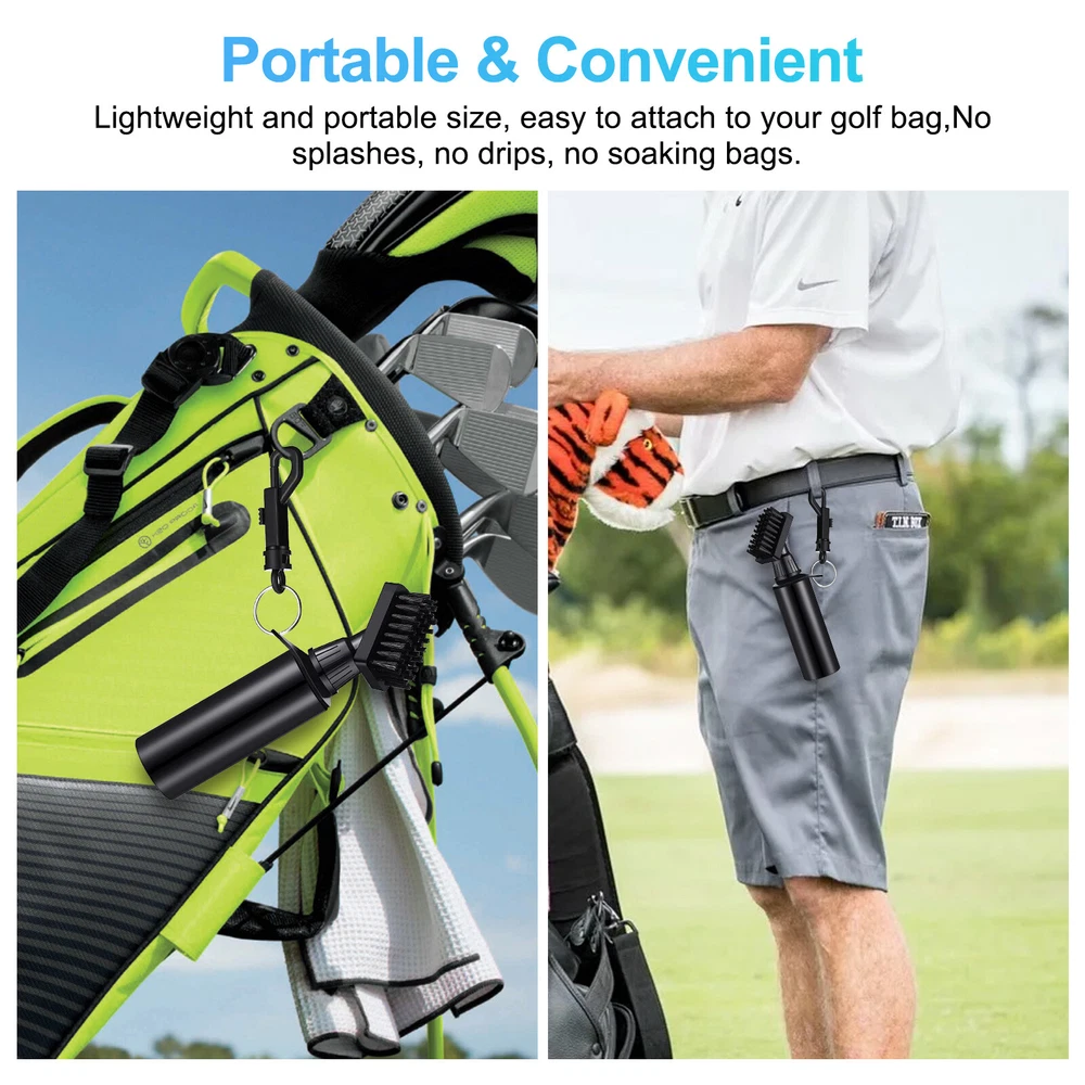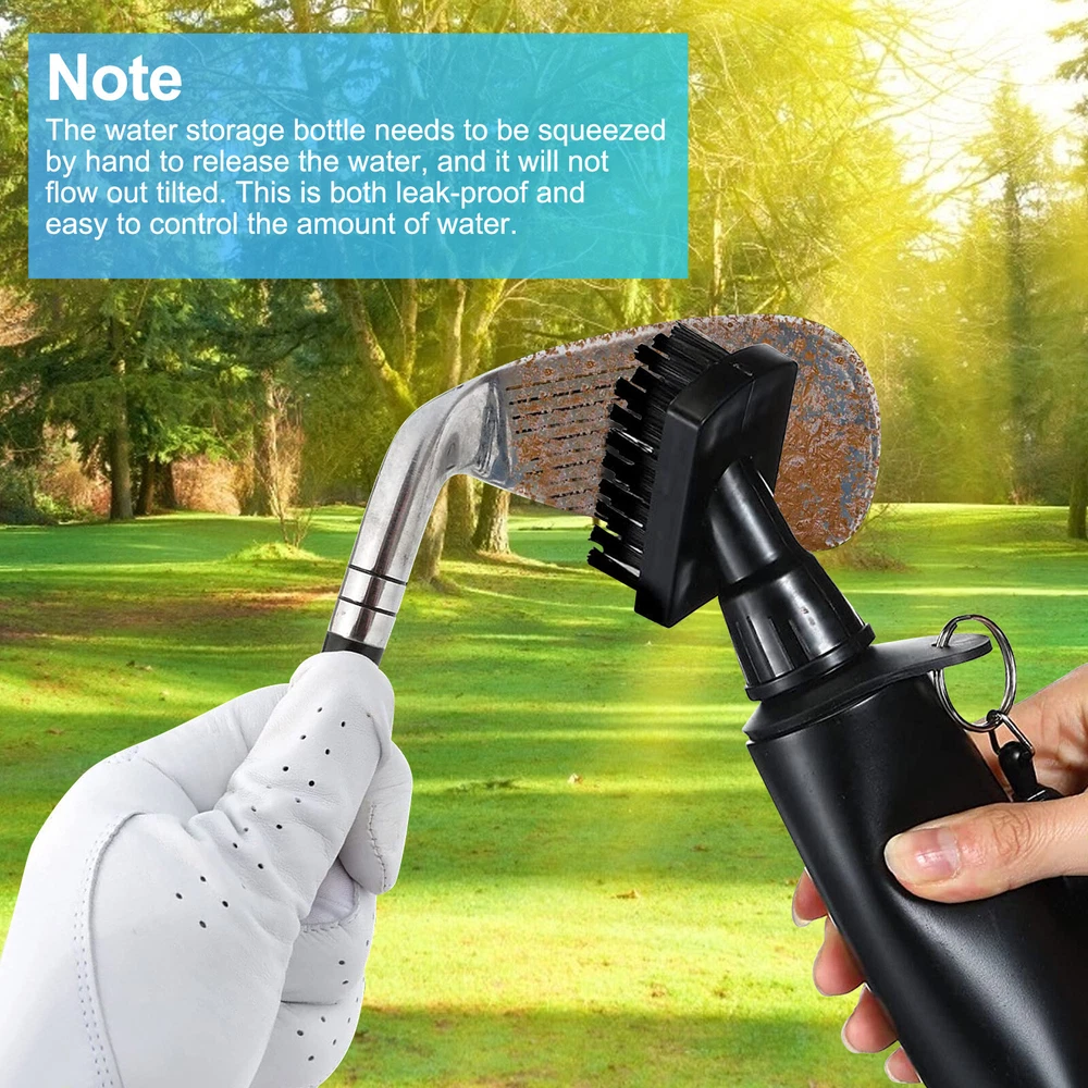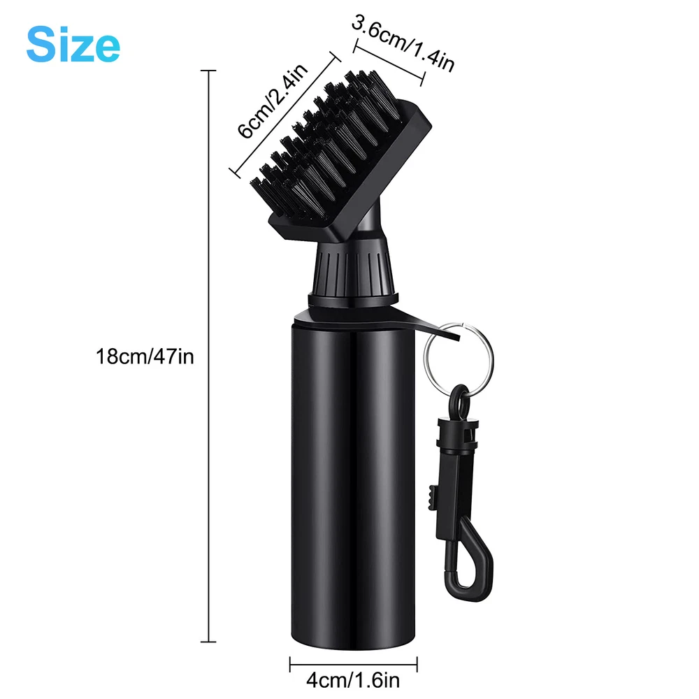Specifications: Material: Plastic Optional Color: Black, Green, White Size: 21*4.7cm / 8.3*1.9in Brush Head Size: 4.5*2cm / 1.8*0.8in Pull String Max Length: 80cm / 31.5in Features: · Golf Club Cleaner Spray Brush: This golf club cleaner brush is a combination of a sturdy club cleaner brush and a spray bottle for more convenience on cleaning your golf club. · Strong Stiff Bristles: Strong bristles that of a great stiffness ensure a great sturdiness on brushing off the dirt and a great durability. · Convenient Spray Function & Easy-To-Use: Spray bottle design makes it easy to wet and clean your club. Simply press on the textured button to spray. · Protective Brush Cover: Additional brush cover provides more easiness on carrying and storage. · Attached Hanger Clip: Attached clip design allows an easy attachment to your golf bag. · Retractable Zip-Line Cord: Retractable zip-line cord offers a good mobility on using. Notes: * Due to effect of light, camera and monitors, the item’s real color may be slightly different. * Allow slight dimension difference due to manual measurement. * Thank you for your kindly understanding. Package Includes: 1 PC Golf Club Brush (Others are NOT included)
