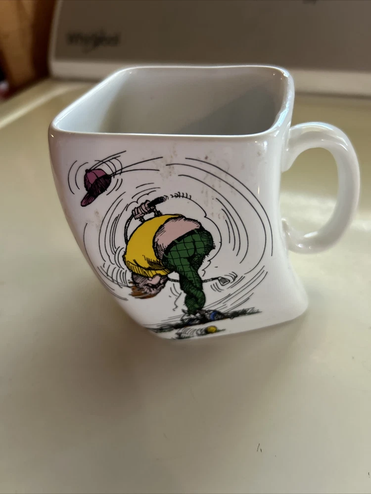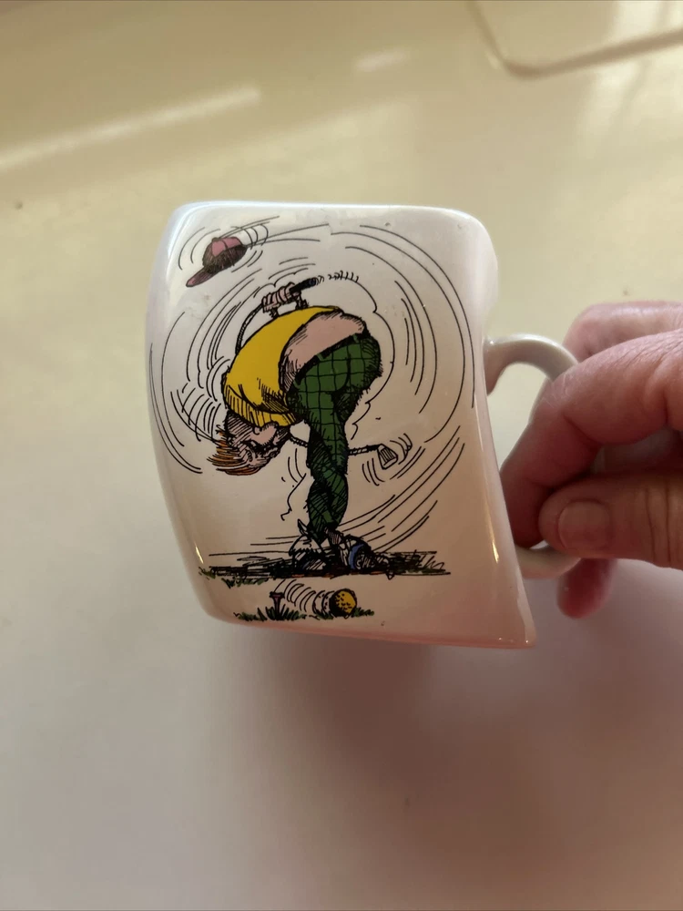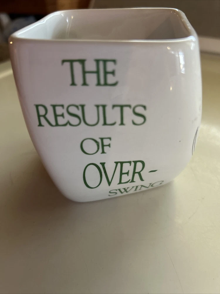 This vintage Golf Coffee Mug is a must-have for any golf enthusiast. The white square ceramic mug features a pictorial pattern of the results of an over swing, making it an excellent addition to any golfer's collection. The mug is perfect for all occasions and is suitable for coffee or tea. The Golf Mug is microwave and dishwasher safe, making it convenient to use and clean. It comes in a set that includes a coffee mug, making it a great gift for a golf-loving friend or family member. This Mug is an authentic product made in Taiwan by the Golf Mug brand. Order now and enjoy your morning coffee in style. Great GAG gift for the golfer