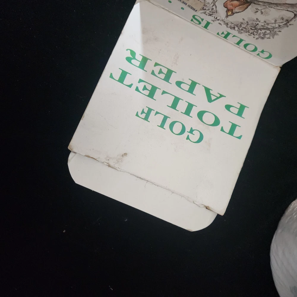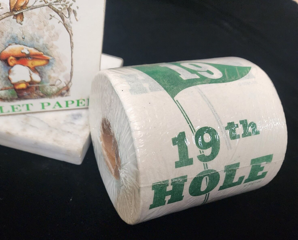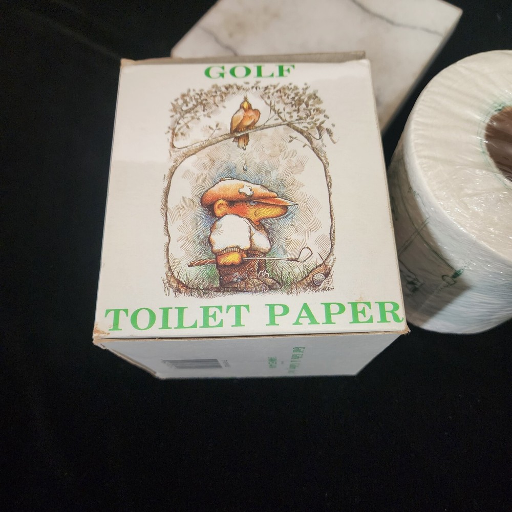 This hilarious golf-themed toilet paper is a must-have for any golf lover with a sense of humor! The vintage charm adds character, and even with minor signs of age, it still delivers a good laugh. Perfect as a quirky gift or a fun conversation starter in the bathroom. The sealed box keeps it protected, and the 19th hole joke never gets old. Highly recommend for anyone who enjoys a lighthearted twist on everyday items!
