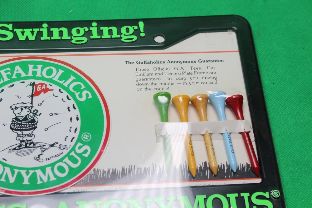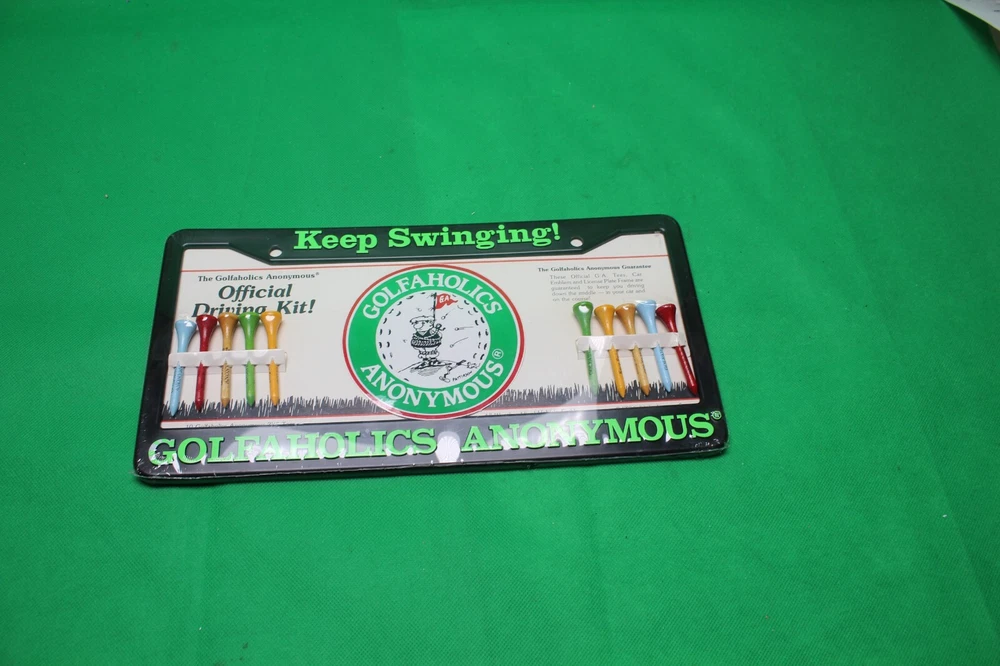 Show off your love for golf with this stylish Golfaholics Anonymous Keep Swinging metal license plate frame. The frame fits standard size license plates and features a sleek design with the Keep Swinging slogan. It is perfect for any golf enthusiast who wants to add a touch of personality to their vehicle. Crafted by Thought Factory in the United States, this license plate frame is a high-quality product that is built to last. It is a great addition to any collection and makes a perfect gift for any golfer. Get yours today and keep swinging with pride!