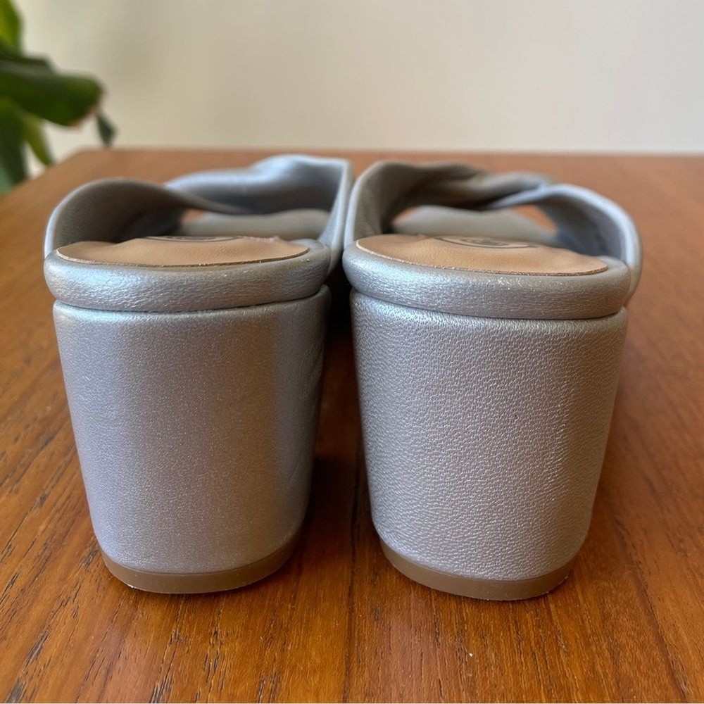Condition: Never worn! Some residue from original price sticker on bottom of each shoe and some knicks and scratches in the leather, but no other flaws! Size: 6.5 Color: Silve