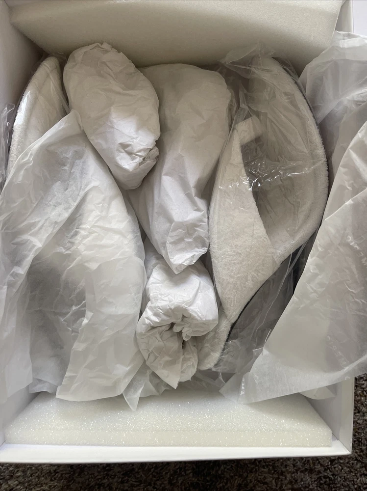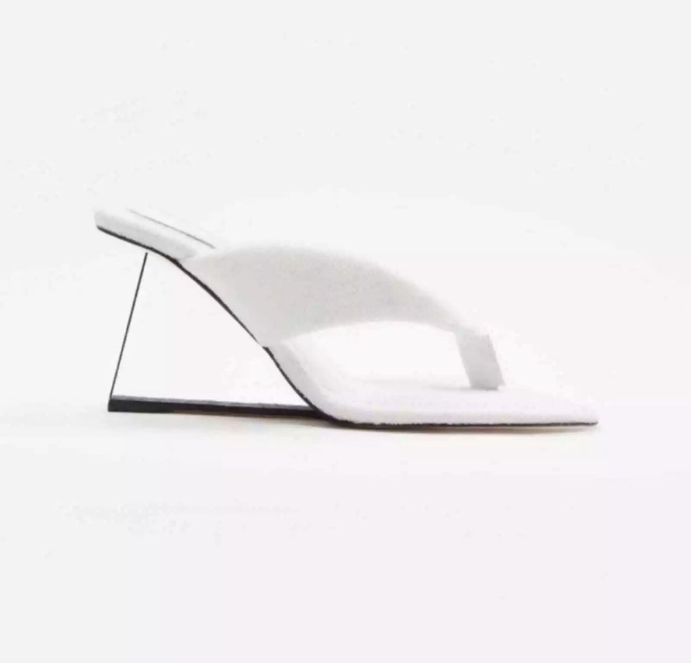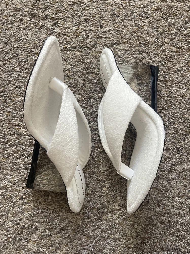 Good American GA077T size US 9 1/2 Cinderella Wedge Glass Heel White Terry Please review all pictures as this is the item you will receive. Please message me with any questions. Thank you SSA