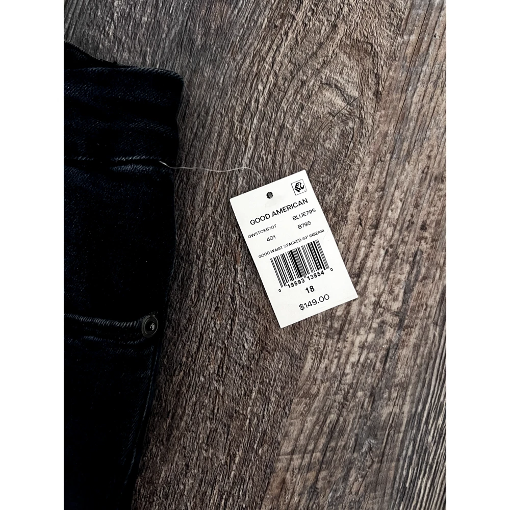 Good American Good Waist Stacked Jeans Sz 18 Skinny High Rise Stretch Dark Faded Size: 18 Inseam: 32" Faded Dark Blue Wash High Rise Stretch Excellent Condition