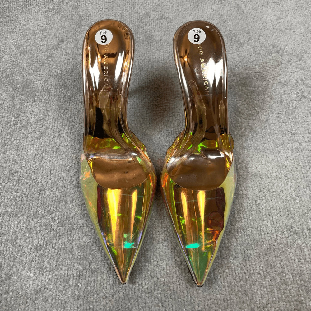 NIB Good American Psychedelic Color Mule Stilettoes New Years Eve Heels 9 $275 Excellent condition - new, shelf pull Size 9 4” heel Ships Fast Ships from a smoke free home