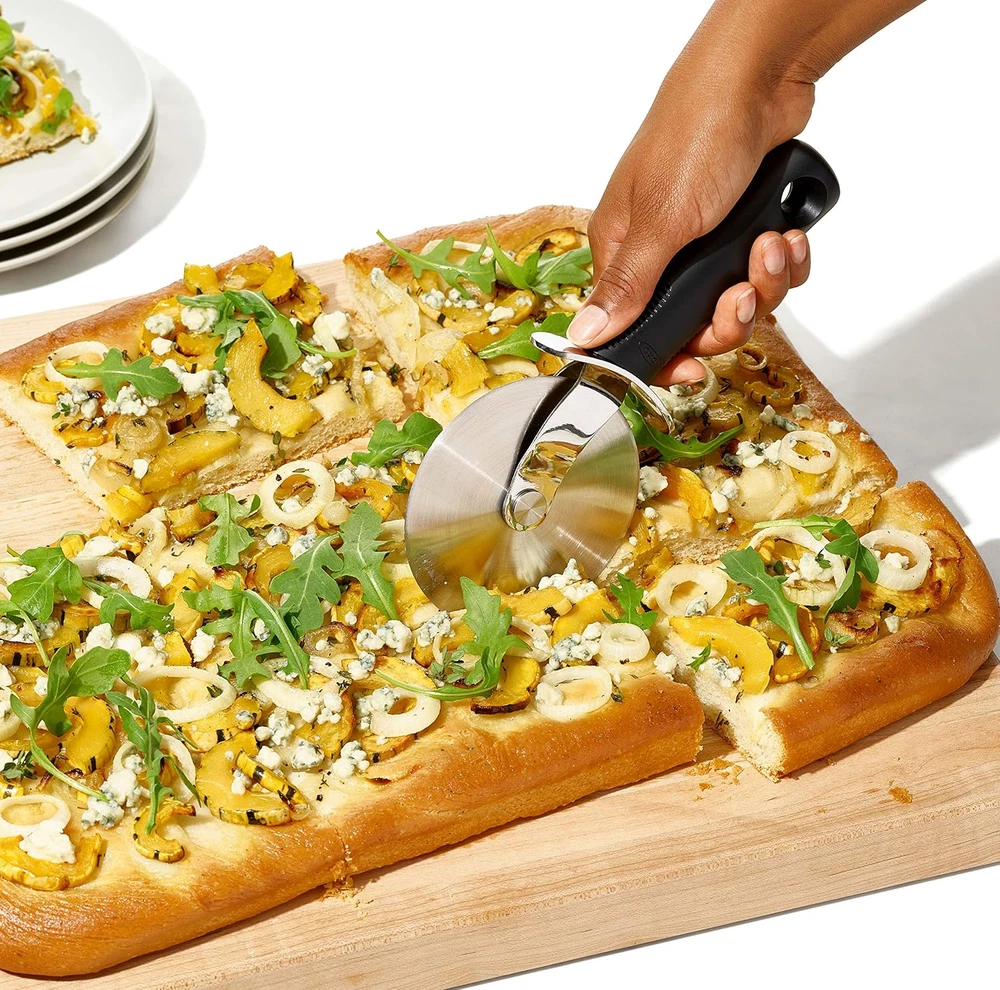 Store New Arrivals Add to Favorite View Feedback Contact Good Grips NEW Large 4-Inch Pizza Wheel and Cutter Description Item model number 11301000 Item Weight 0.25 Kilograms Style 4" Pizza Cutter Country of Origin China Global Trade Identification Number 20719812001542, 07198120015486 Handle Material Plastic Product Dimensions 10.5"L x 4.2"W Blade Material Stainless Steel Large, stainless steel blade cuts through deep dish or thick-crust pizza with ease Thumb guard protects hands while in use Large, non-slip handle for a comfortable grip BPA-free Dishwasher safe Also great for quesadillas, pie crust, brownies and more The sharp, stainless steel blade of the OXO Good Grips Pizza Cutter slices through even the thickest crusts. Die-cast zinc thumb guard and comfortable, soft non-grip handle makes it safe and easy to use. ABOUT US We offer the best prices around on high quality products. Our E-store includes media such as books, movies, music and games while offering electronics, toys, sporting apparel, clothing, tools, general home, garden items and more. SHIPPING We are always working hard to ensure your package arrives as soon as possible. Please understand that some factors like weather, high postal traffic, and the performance of shipping companies are outside of our control. We offer free shipping to the lower 48 states and ship within 2 business days of payment, usually sooner. We do not accept P.O. Boxes. Please provide a physical address. RETURNS We offer a 30-Day Return Policy on items which you are not completely satisfied with. You have the option for a full-refund or an exchange of the item. No returns are available on items shipped outside of the USA. PAYMENT We accept PayPal. CONTACT US This page content is yet to come Please ad us to your favorite seller and visit again later Thank You CUSTOMER SATISFACTION We try our very best to make sure every customer is completely satisfied. If there's a problem, message us! We're happy to help.