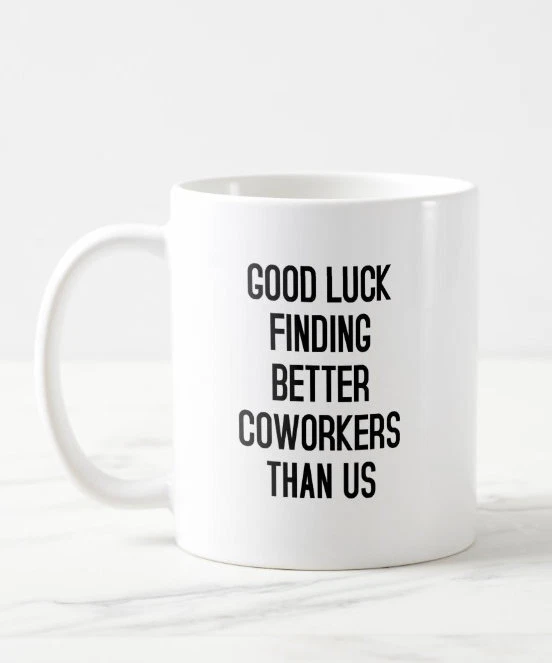 Good Luck Funny Coworker Mugs Goodbye Coworker Gift Work Friend Good Luck Mug Product Details.. This high quality 11oz. ceramic white mug has a premium hard coat that provides crisp and vibrant color reproduction sure to last for years. Perfect for all hot & cold beverages. The highest quality printing possible is used. It will never fade no matter how many times you wash it. Material: 100% Ceramic. Print both sides. Dishwasher and Microwave Safe. High Gloss + Premium White Finish. Printed in the U.S.A. Personalized & Custom. We support personalized and custom mug to add custom, when placing an order, you can add notes to the "order note" in shipping address section. Also you can contact us directly via message. Shipping Info. Ready to ship in 1 to 2 business days, All products are made-to-order and proudly printed in the United States. Shipped by USPS and DHL, You will receive your order in 5-7 days. Replace & Refund. All products are defective during shipping broken, chipped will be replaced free of charge. You are not satisfied with the product, we will refund 100% money to you. If any other issues arise, please do not hesitate to message, we would be more than happy to assist you.