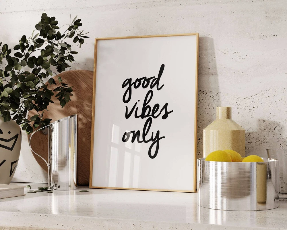 Good Vibes Only Print Printable Wall Art Motivational Wall Decor Good Vibes Poster Art Motivational Quote Print Material: Premium luster photo paper Print type: Inkjet printing One side printed + The finish provides the highest possible resolution and color saturation + Lasts up to 200 years in color and 400 years in black-and-white + Printed on high-quality resin-coated photo base paper medium + Posters can be hung with double-sided tape, tacks, or framed + Hand washing with a gentle cry cloth is recommended for extended durability I will hand select the best choice of paper for your chosen design to ensure top quality results for a beautiful, bright and luxurious print. All prints are sealed in cellophane slips for protection during transportation, and are shipped in a protective cardboard envelope.