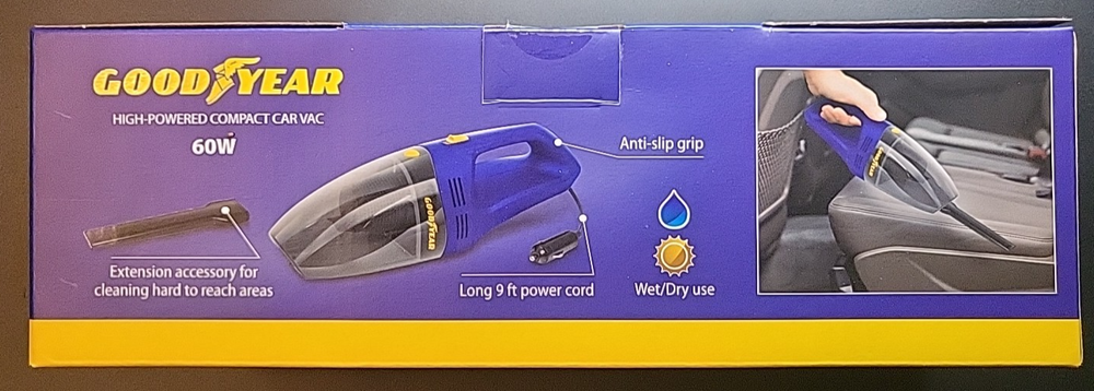 Good Year Compact Car Vacuum 12v DC 60W Wet & Dry Bagless Cleaning New!!! Buy with Confidence We have over 30 years of trusted service in the collectibles industry. Proud Ebay partner since 2005. 100% positive feedback.