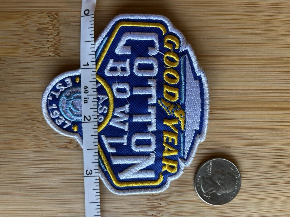 Good Year Cotton Bowl Patch College Football NCAA Jersey Logo New Big 12 SEC SWC I love theses patches i have made a long search and the are top notch and i am happy to share them with you! To Set Proper Expectations This is NOT A IRON PATCH IT NEEDS TO BE SEWN ON CLOTHING *** ORDERS OF 6 PATCHES OR LESS AT A TIME WILL BE SENT REGULAR FIRST CLASS USPS MAIL WITHOUT A TRACKING NUMBER **** (orders of 6 patches or more at one time are mailed with tracking at my expense) If you are purchasing 6 patches or less at a time and require shipping tracking with your order *OR* if you require expedited shipping on ANY ORDER, PLEASE CONTACT BEFORE YOU PLACE YOUR ORDER. As with anything I sell I offer a 100% Guarantee with proper expectations and accept all returns. Im looking to build bridges for long term business so if there are any issue please reach out and i will make it right.