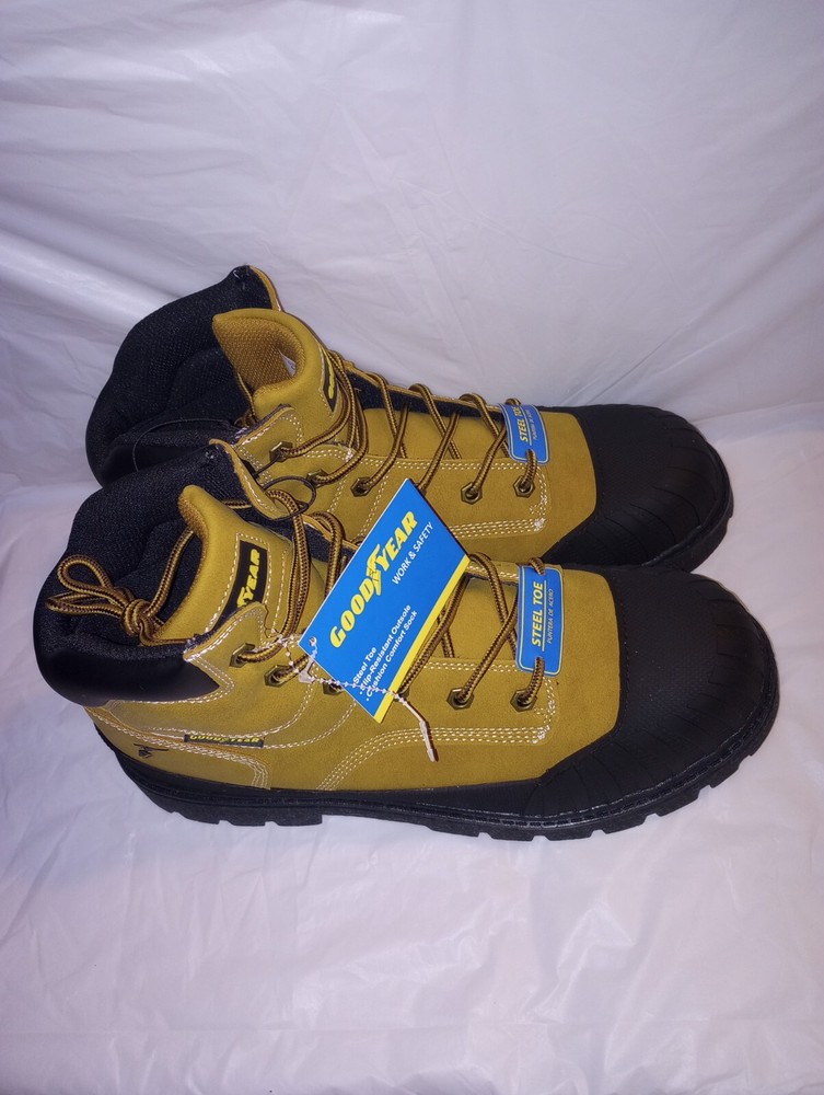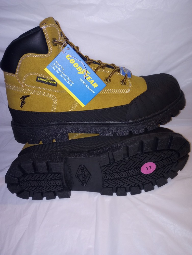 Upgrade your workwear with these stylish &Work boots. Made with a durable polyurethane upper material and a slip-resistant rubber outsole, they provide maximum protection and comfort for your feet. The round toe shape and ankle shaft style make them perfect for any occasion, while the beige color and solid pattern add a touch of sophistication. Featuring a steel toe and cushioned insole, these boots are designed for hardworking men who value both style and functionality. The good year brand is known for its quality products, and this model is no exception. Don't miss out on the opportunity to own a pair of these top-of-the-line boots.