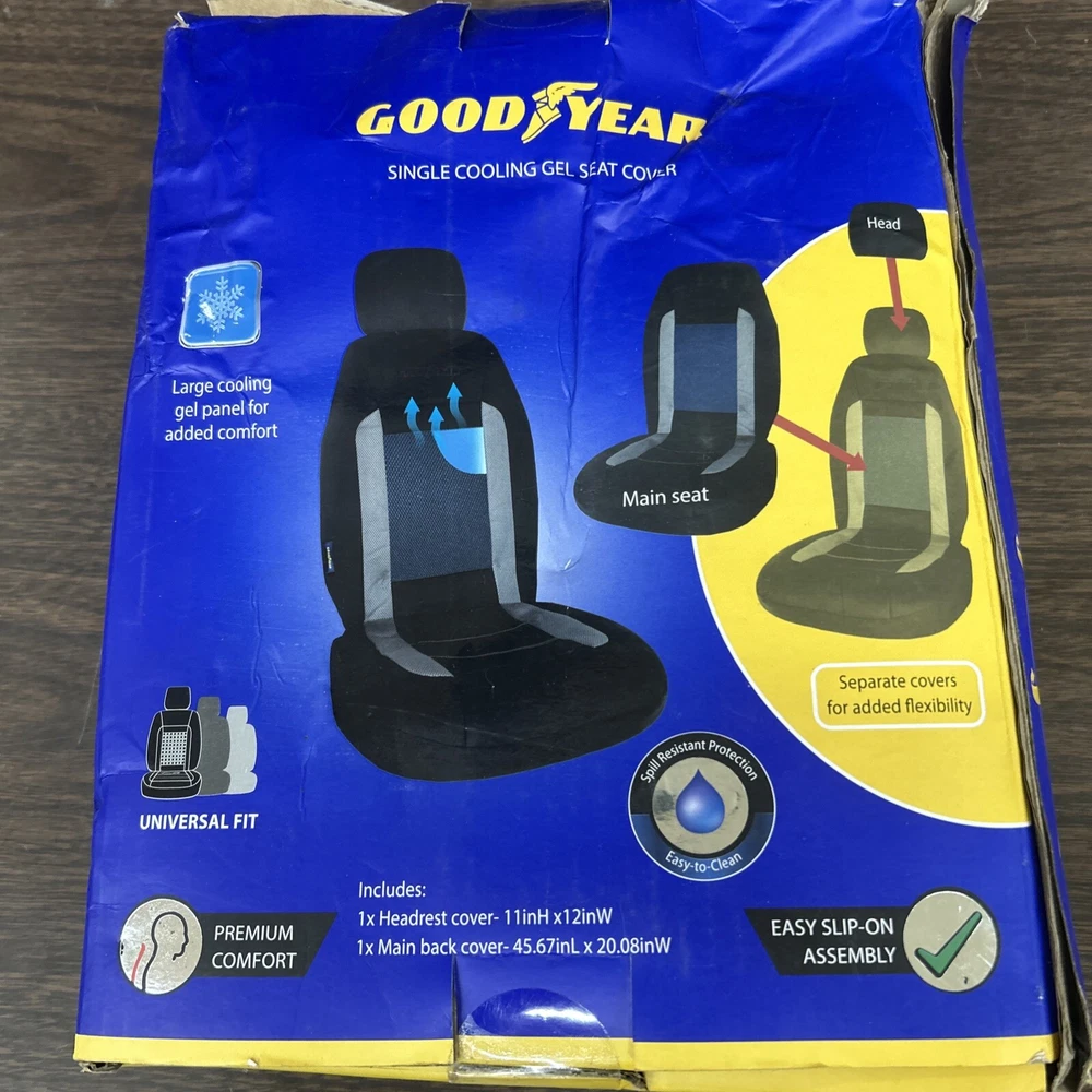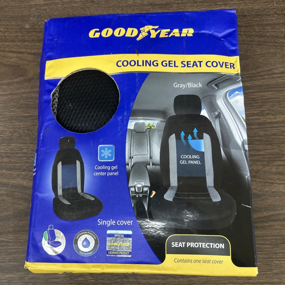 Good Year cooling gel cushioned seat cover gray black NEW This item is in an unopened box. As you can see from the pictures, the box is damaged. Thank you for looking at this item. We hope that you will consider purchasing it. We at Habitat for Humanity in Madison County, Indiana, believe that every person deserves a place to call home. All proceeds from this purchase will go towards the building of our Habitat homes. We hope that you will also consider checking out other items for sale at our eBay store at https://www.ebay.com/str/hfhmadisoncountyrestore or HFH Restore of Madison County. Our store is open Wednesday, Thursday, Friday, and Saturday. We are closed Sunday, Monday, and Tuesday. While I try to mail items as quickly as possible, mailing may be delayed a bit if orders are placed when the store is closed. If you have any questions on any of our items for sale, please do not hesitate to ask. Thank you so much for shopping with us!