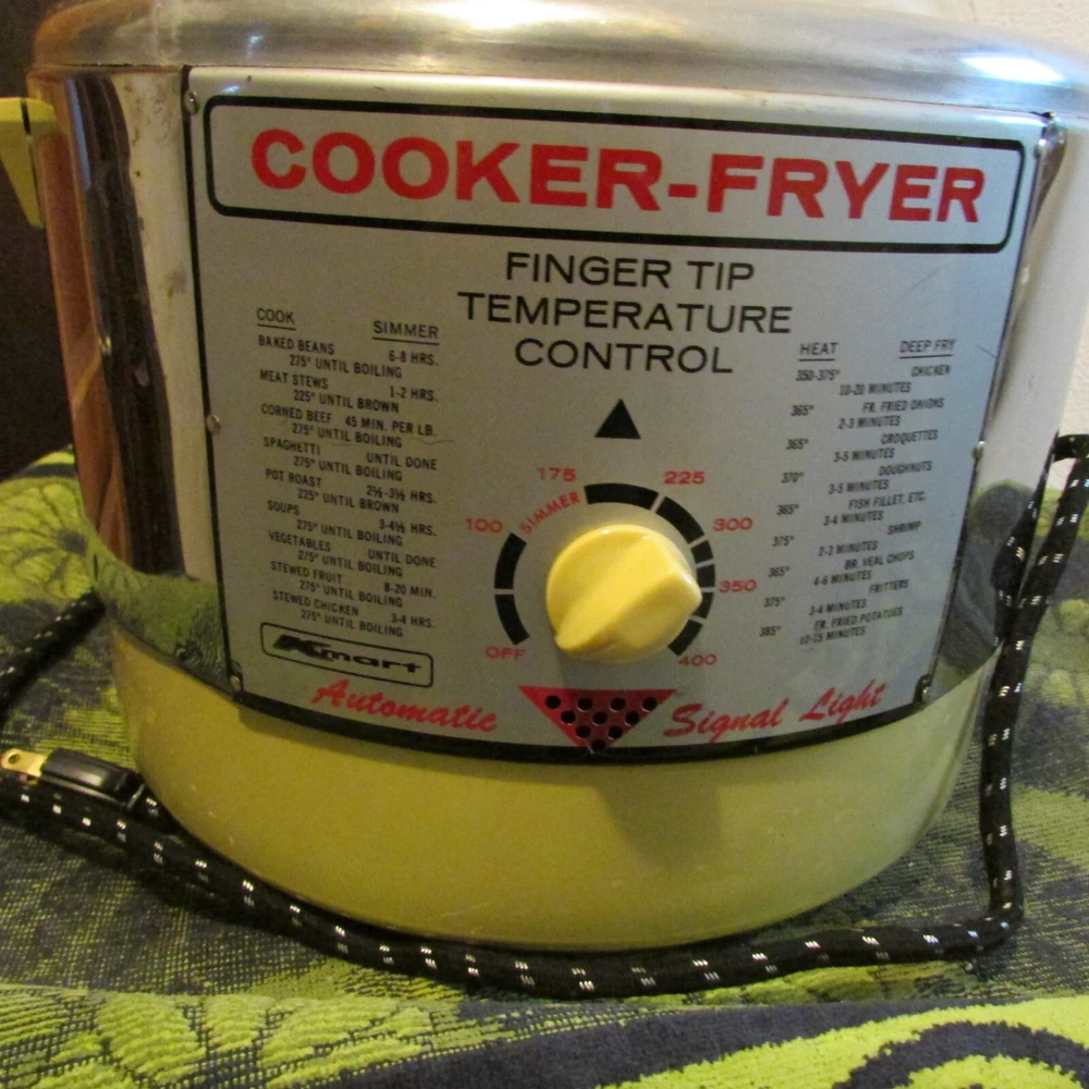 Very good vintage K-Mart slow cooker/ deep fryer # M-2000. The unit has been tested & works perfectly. The automatic signal light also works as it should. Has a little ding on the right side of the controls. Doesn't affect anything. Nice long cloth cord is in perfect condition. Perfect legs, 1150 watts. The cooker doesn't come with the basket so I'm adding the spachler. Nice 70's yellow color contrasting the outside stainless steel. Made in ILL. Secure shipping, oversized package. **************************************************************************************************************************************************** Ships within 24 hours of payment received. Delivery confirmation included. Payment due within 3 days of auction end. I utilize all shipping services including UPS, USPS & FedEx. This way I can figure out the best service to use for any particular item.