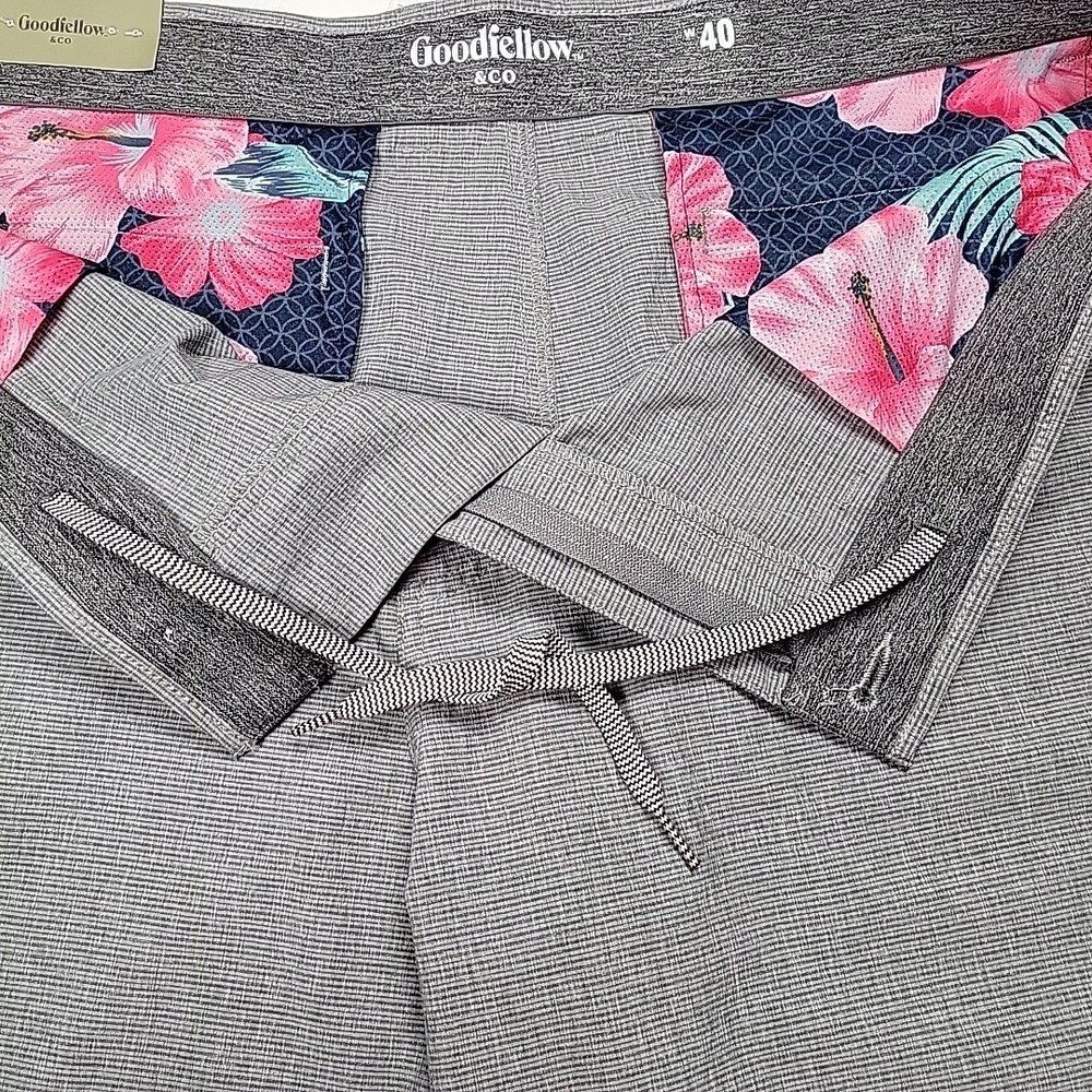 The Goodfellow & Co. Mens Size 40 Hybrid Swim Shorts are designed for the beach and outdoor activities, offering UPF 50+ protection and stretch for comfort. Made with a blend of polyester and spandex, these swim shorts feature a salt n pepper pattern in a stylish gray color. The lightweight and quick-drying design, along with pockets for convenience, make them perfect for lifeguarding, surfing, recreational swimming or just hanging out. The machine washable polyester lining ensures easy care, while the brand's reputation for quality craftsmanship adds a touch of reliability to your swimwear collection. 1 day or same day shipping once payment is received.