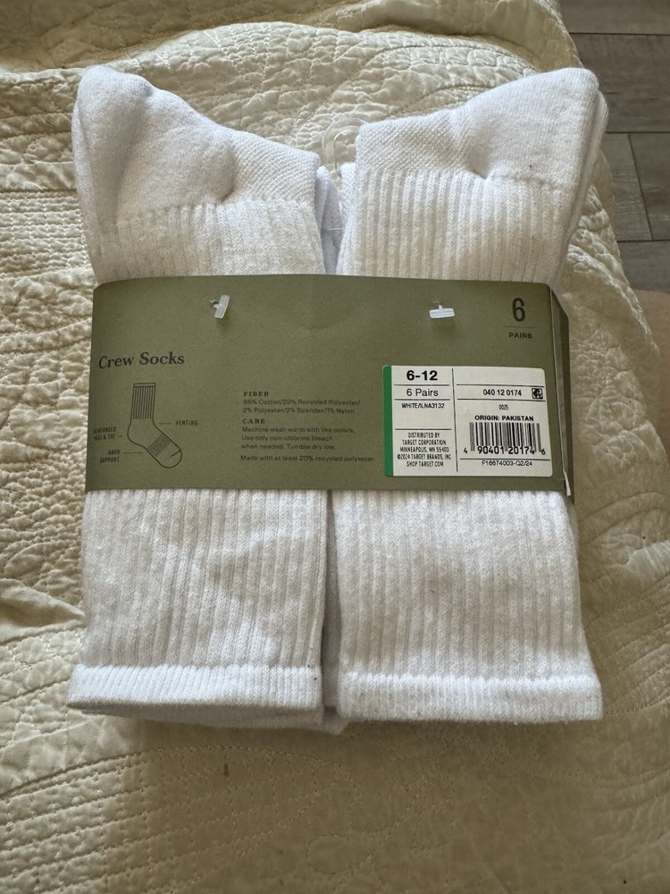 Goodfellow & Co men’s Crew Socks 6 Pairs WHITE venting wicking arch Support soft. Condition is New with tags. Shipped with USPS Ground Advantage.