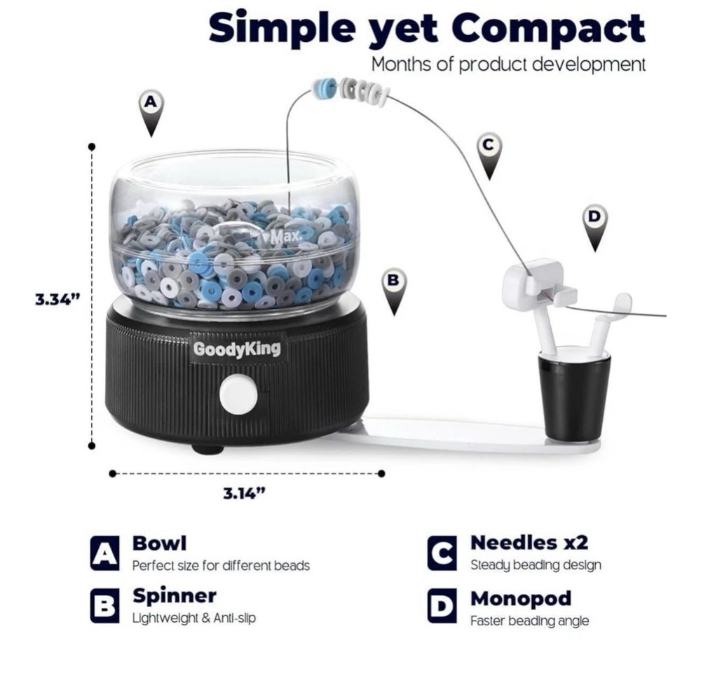 The GoodyKing Electric Bead Spinner for Bracelet Making Kit in Black by GraceDuck is a versatile tool for jewelry making. With dimensions of 6.7 x 3.4 x 3.4 inches and a weight of 9.9 ounces, this electric bead spinner is suitable for kids, teens, and adults alike. Its special feature allows for handling various types of beads, making it a convenient addition to any craft kit. Perfect for all seasons, this electric bead spinner is a great gift for those interested in beadwork and bracelet making. GoodyKing Electric Bead Spinner for Bracelet Making Kit - Clay Bead Kit Essentials, Bead Spinner Needles Included, Easy Friendship Jewelry Bracelet Making, Applicable for Different Kind of Beads Black