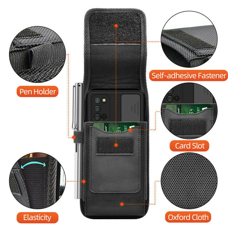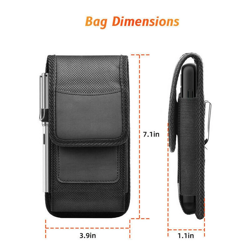 Features: * Brand New Metal Belt Clip , Belt Loop Pouch Nylon Velcro Flap Case * Materials : Canvas Nylon * Canvas exterior with Velcro closing flap; inside lined with cloth. * The interior is lined with black soft neoprene fabric that protects your phone from minor bumps and shock. * Premium leatherette and high-quality construction with black color stitching and sealed seams for durability and classic good looks. * Vents on the back for phones with rear speakers. Magnetic closing flap keeps your phone safely inside the case. * Holster case with belt loop, fixed metal belt clip and carabiner hook; 4 Different Ways to wear: Vertical/ Horizontal/ Clip On/ climbing hook. Elastic-type wide band to hold a pen or stylus on the case Package Included: 1 x Canvas Nylon Pouch Carrying Holster Case & Belt Clip Contact: If you are not satisfied with your purchase, simply contact us via eBay message and your interests will be protected. Please don't open a dispute or leave neutral/negative feedback without communication,I will reply within 12 hours of receiving the message.Thanks.