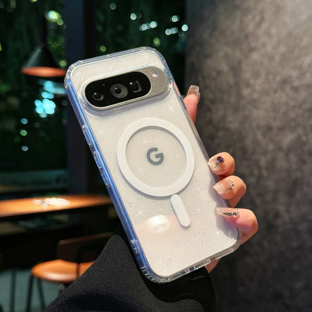 For Google Pixel 9 Pro XL 9 Pro 9 Glitter Clear Military Grade Shockproof Case 【 Military-Grade Drop Protection 】 : Reinforced corners, screen and camera protection with high impact shockproof TPU. Provides a long-lasting layer of protection to shield your expensive device from dust, scratches and drops. 【 Crystal Clear 】 : The antioxidant layer effectively ensures the case remains clear. Ultra transparent and scratch-resistant back is easy to show the original beauty of your iPhone. 【 Slim, Pleasantly Velvety Grip 】 : It is easy to put into and remove from the front pockets of your jeans with no catching or slipping. The strong rubber edges add a pleasant dimpled grip texture and girth to help you to hold it reliably and to keep it comfortable and grippy enough for confident one-handed use. 【 Screen and Camera Protection 】 : raised screen edges and Camera Guard lens frame provide enhanced scratch protection where it really counts.