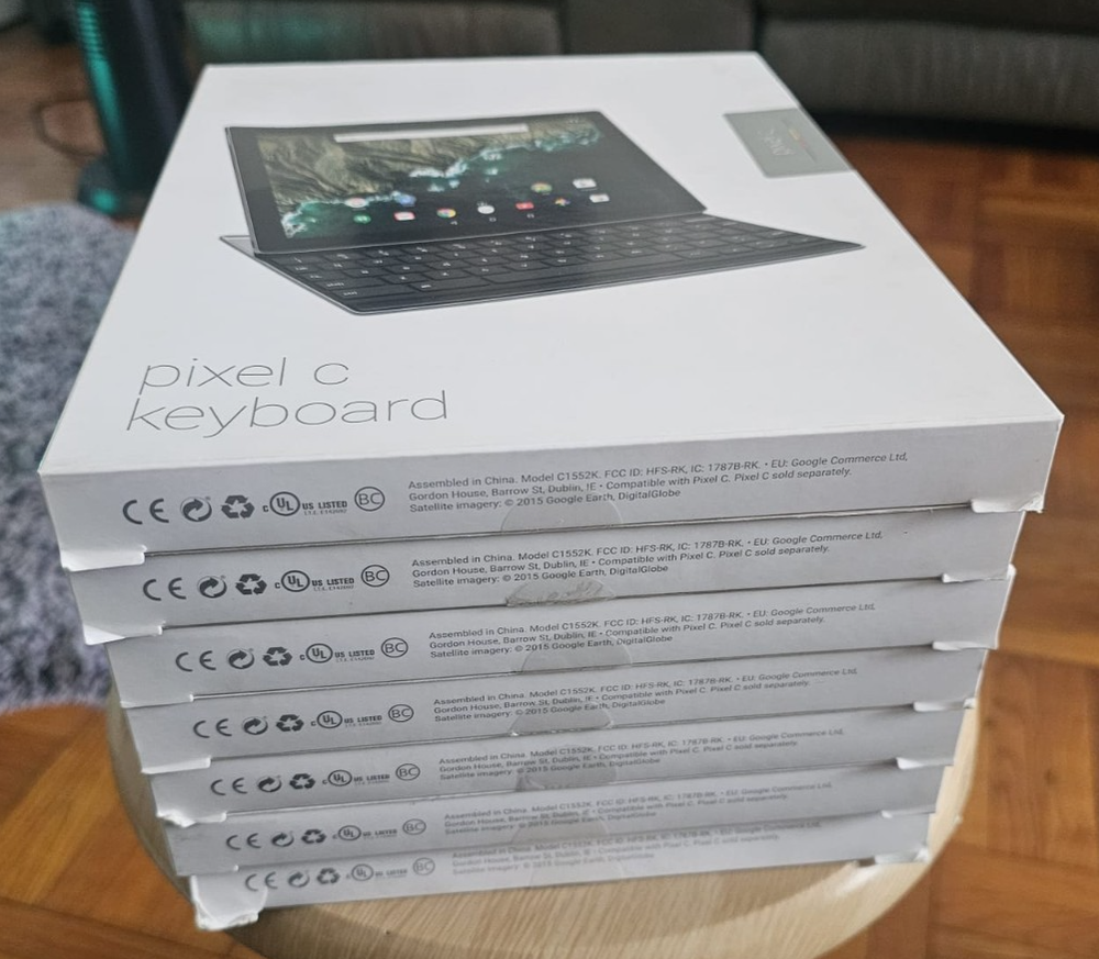 New Google Pixel C Keyboard C1552K QWERTY EN Bluetooth Wireless Android - Silver The product is a silver wireless keyboard designed for the Google Pixel C tablet, featuring a QWERTY layout for easy typing. It connects to the tablet via Bluetooth and does not come with a charger included. The brand is Google, and it is a keyboard dock specifically designed for the Pixel C model. This keyboard provides a convenient and stylish way to type on your tablet, offering a seamless connectivity experience for Android users. "ALL SERIAL NUMBERS ARE RECORDED"