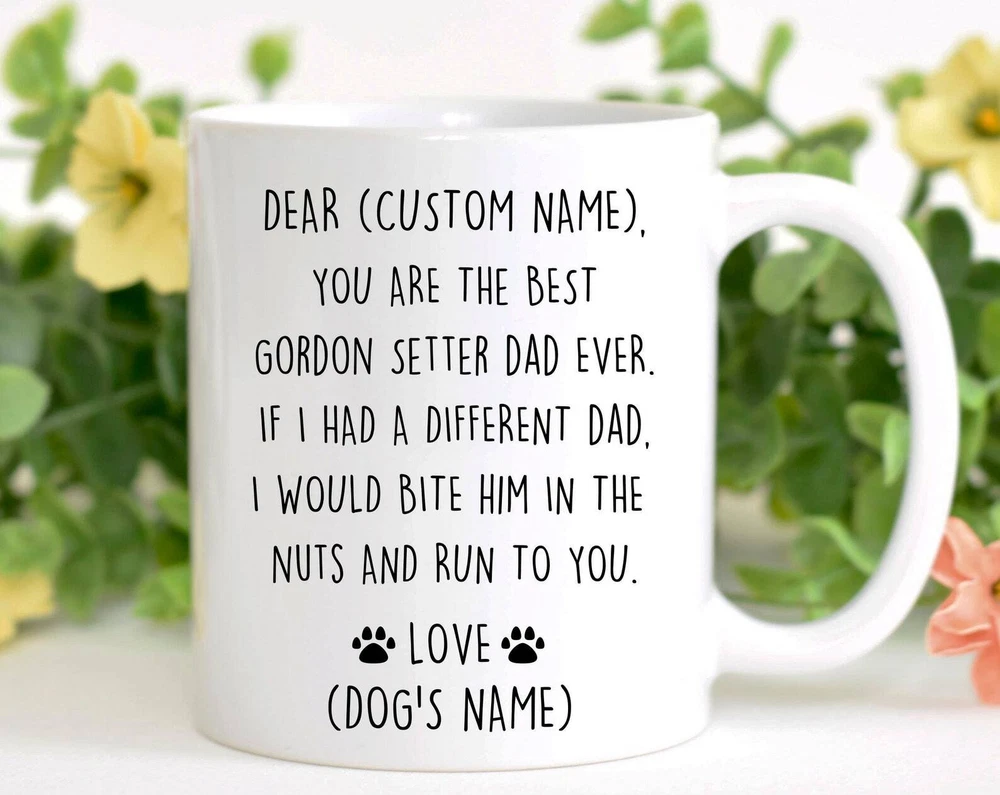 Gordon Castle Setter Dad Birthday Gift Gordon Setter Dad Christmas Gift Gordon Dad Valentine Gift Gordon Dad Appreciation Gordon Dad Mug Product Details.. This high quality 11oz. ceramic white mug has a premium hard coat that provides crisp and vibrant color reproduction sure to last for years. Perfect for all hot & cold beverages. The highest quality printing possible is used. It will never fade no matter how many times you wash it. Material: 100% Ceramic. Print both sides. Dishwasher and Microwave Safe. High Gloss + Premium White Finish. Printed in the U.S.A. Personalized & Custom. We support personalized and custom mug to add custom, when placing an order, you can add notes to the "order note" in shipping address section. Also you can contact us directly via message. Shipping Info. Ready to ship in 1 to 2 business days, All products are made-to-order and proudly printed in the United States. Shipped by USPS and DHL, You will receive your order in 5-7 days. Replace & Refund. All products are defective during shipping broken, chipped will be replaced free of charge. You are not satisfied with the product, we will refund 100% money to you. If any other issues arise, please do not hesitate to message, we would be more than happy to assist you.